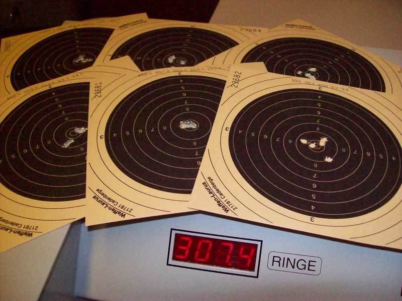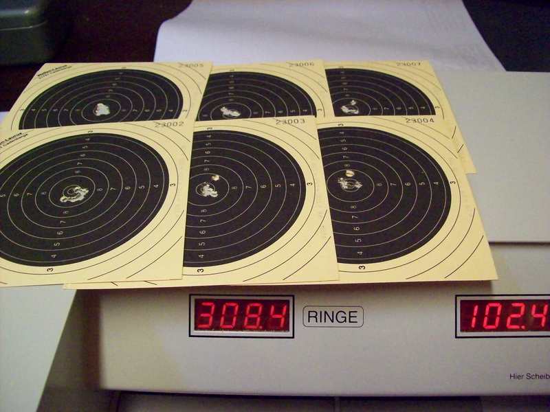 Schussbilder von 5,6 bis 8,0 mm mit der selben Losnummer bei je 10 Schusss.