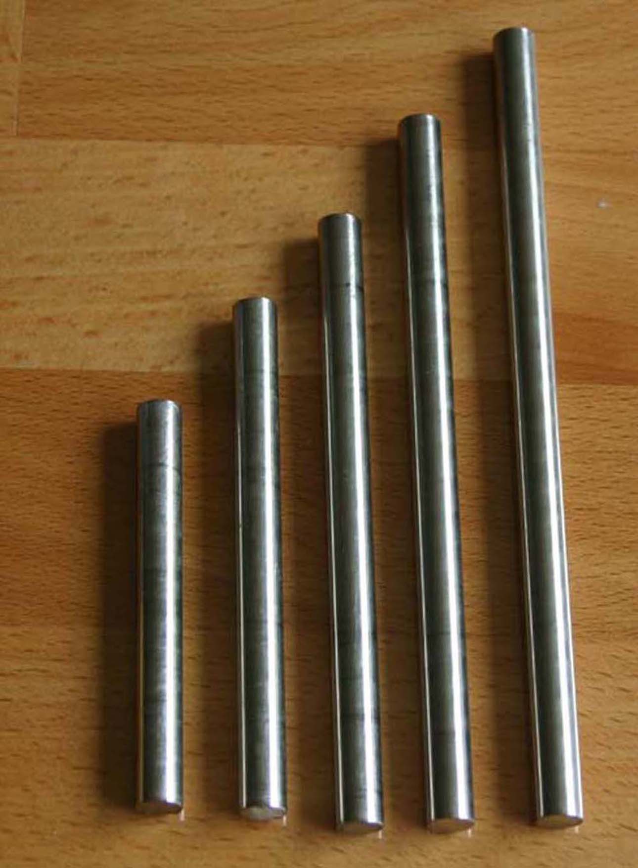 Bild 2: fünf unterschiedlich lange Edelstahlstäbe (Vollmaterial), so können unterschiedlich hohe Schießstandbrüstungen ausgeglichen werden.