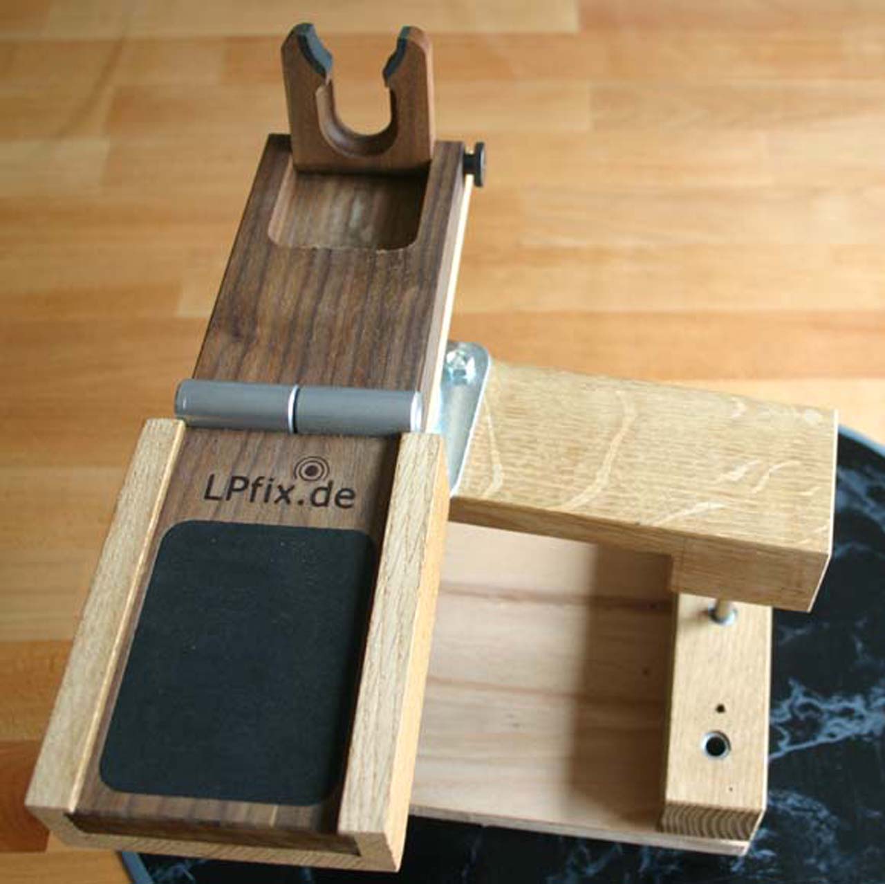 Leicht zerlegbar, nicht zu schwer, nicht zu kostenintensiv und nicht zu aufwändig (Material/Maschinen) sollte die Sache sein. Auch mein LPfix-Halter sollte integriert werden. Das waren die Grundüberlegungen zu diesem Projekt.