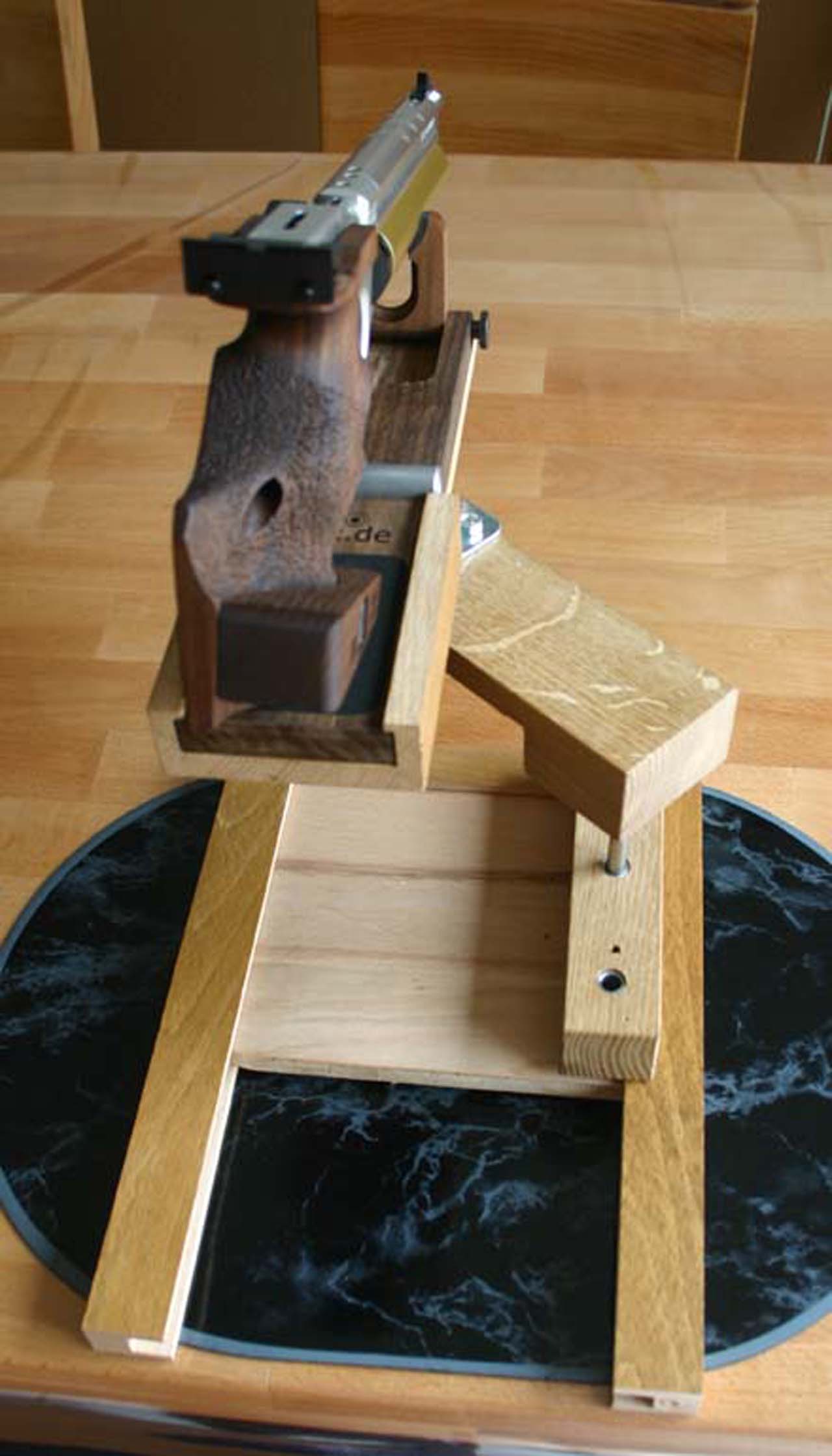 Nein, der Grund ist natürlich ein anderer: Auf Ständen mit Seilzuganlage hat es mich gestört, wenn ich die Lupi - von der Ruhestellung aus gesehen) seitlich versetzt in den Anschlag bringen musste (aufgrund der mittig auf dem Tisch montierten Seilzuganlage). Auch auf unterschiedlich hohe Schießstandbrüstungen reagiere ich empfindlich; ich möchte die Lupi gerne immer aus der gleichen Höhe von der Ruhestellung in den Anschlag bringen.