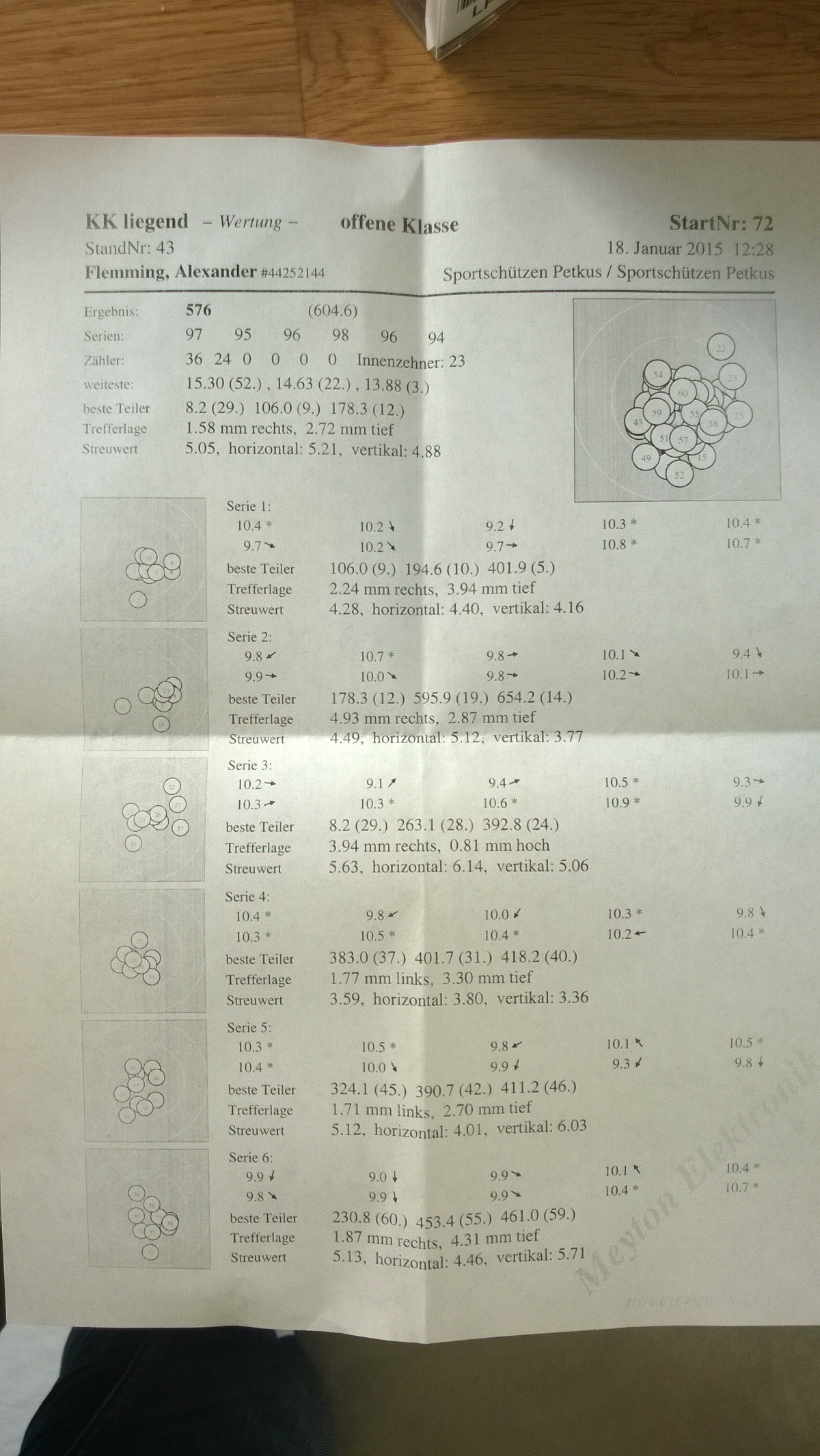 1/10 Wertung 105.7 /105.3 / 105,8 = 316,8 Ringe