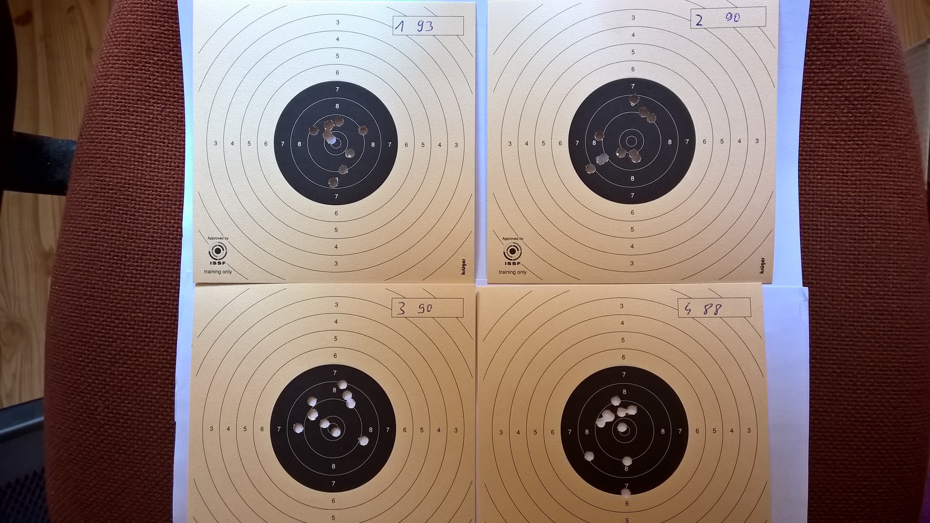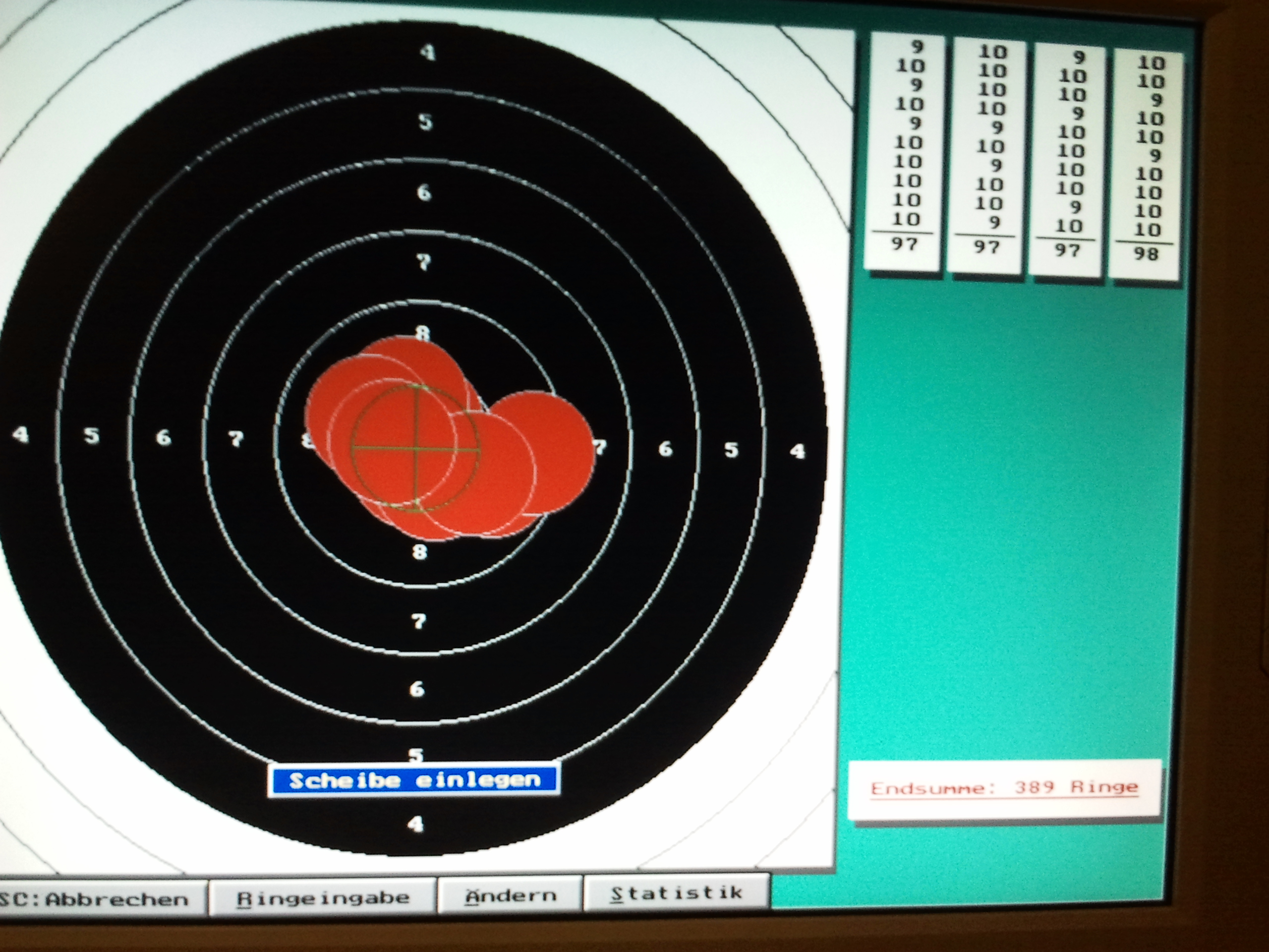 Wenn ich im richtigen Wettkampf so schösse, wäre mein Aufstieg in die offizielle Zweiklassigkeit (im Schnitt >510 für 'classe B') geritzt...