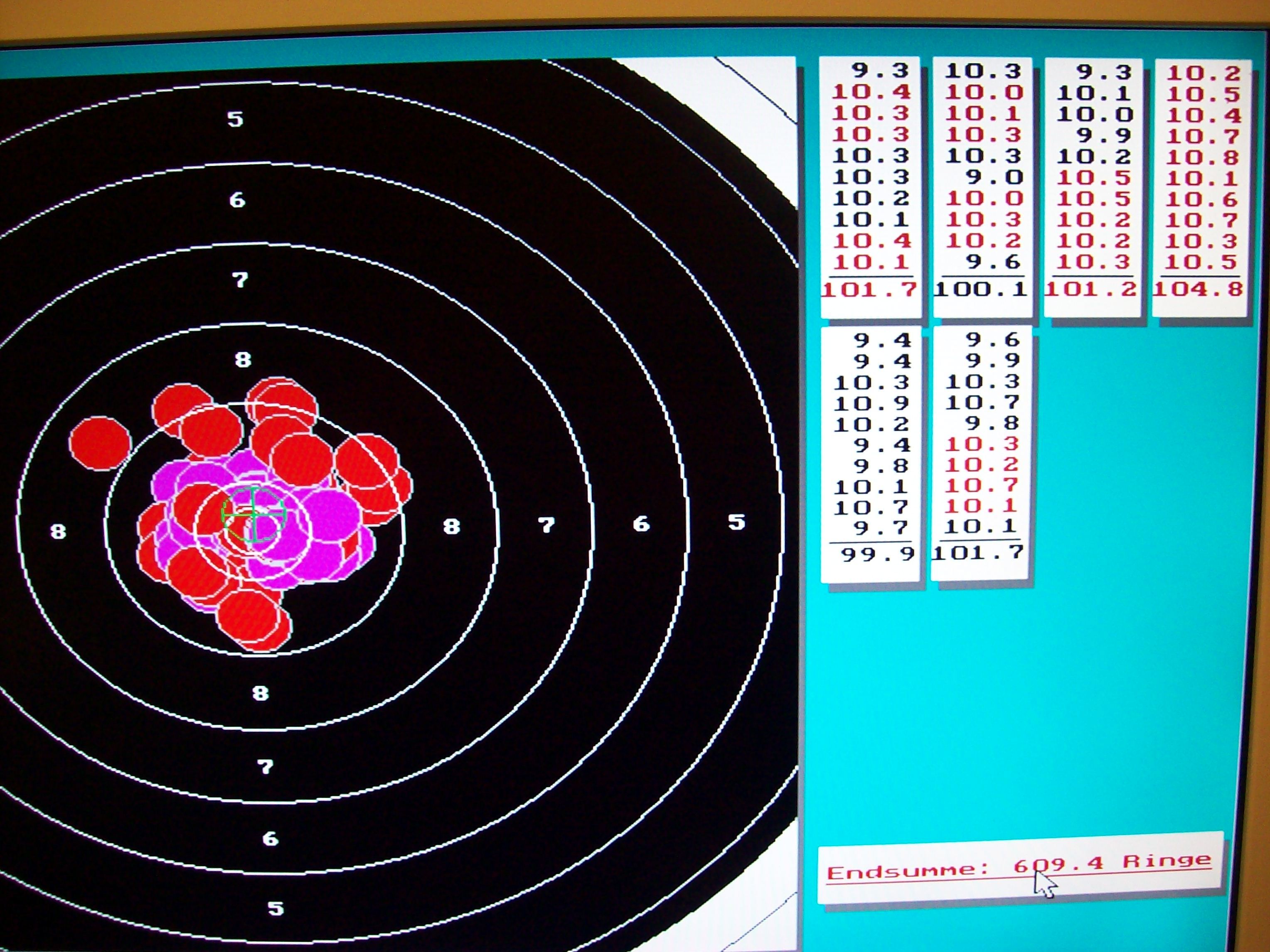 1/10tel Wertung: 104,6 / 103,9 / 202,6 = 311,1 Ringe