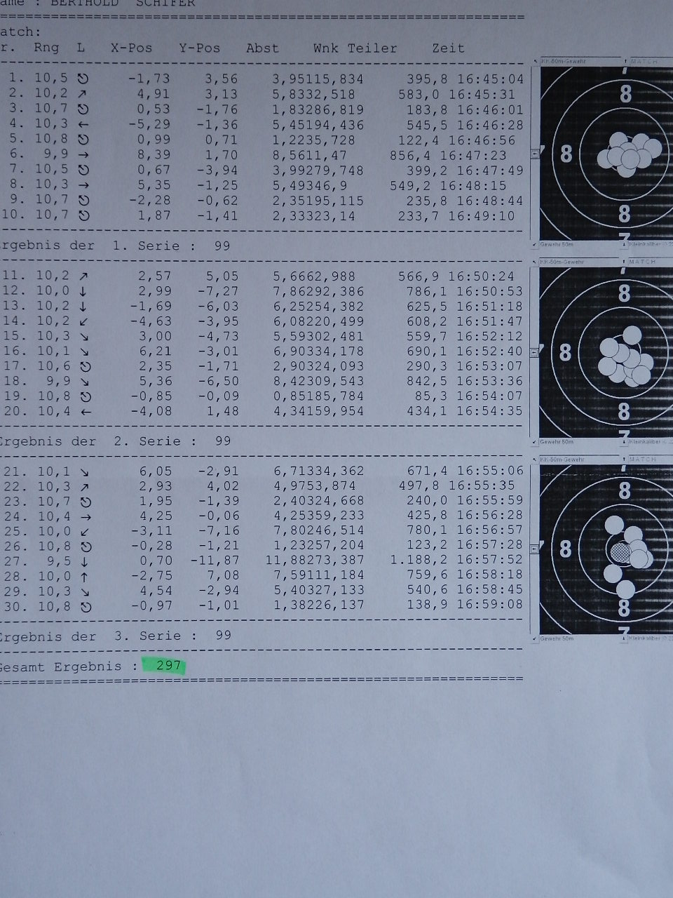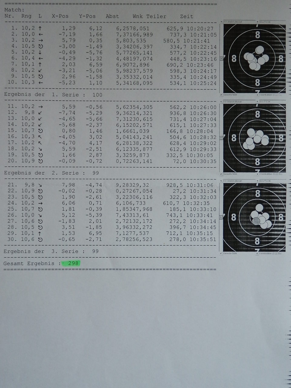 Meine 3 ersten Rundenwettkämpfe mit dem KK500 waren 292, 291, 293.