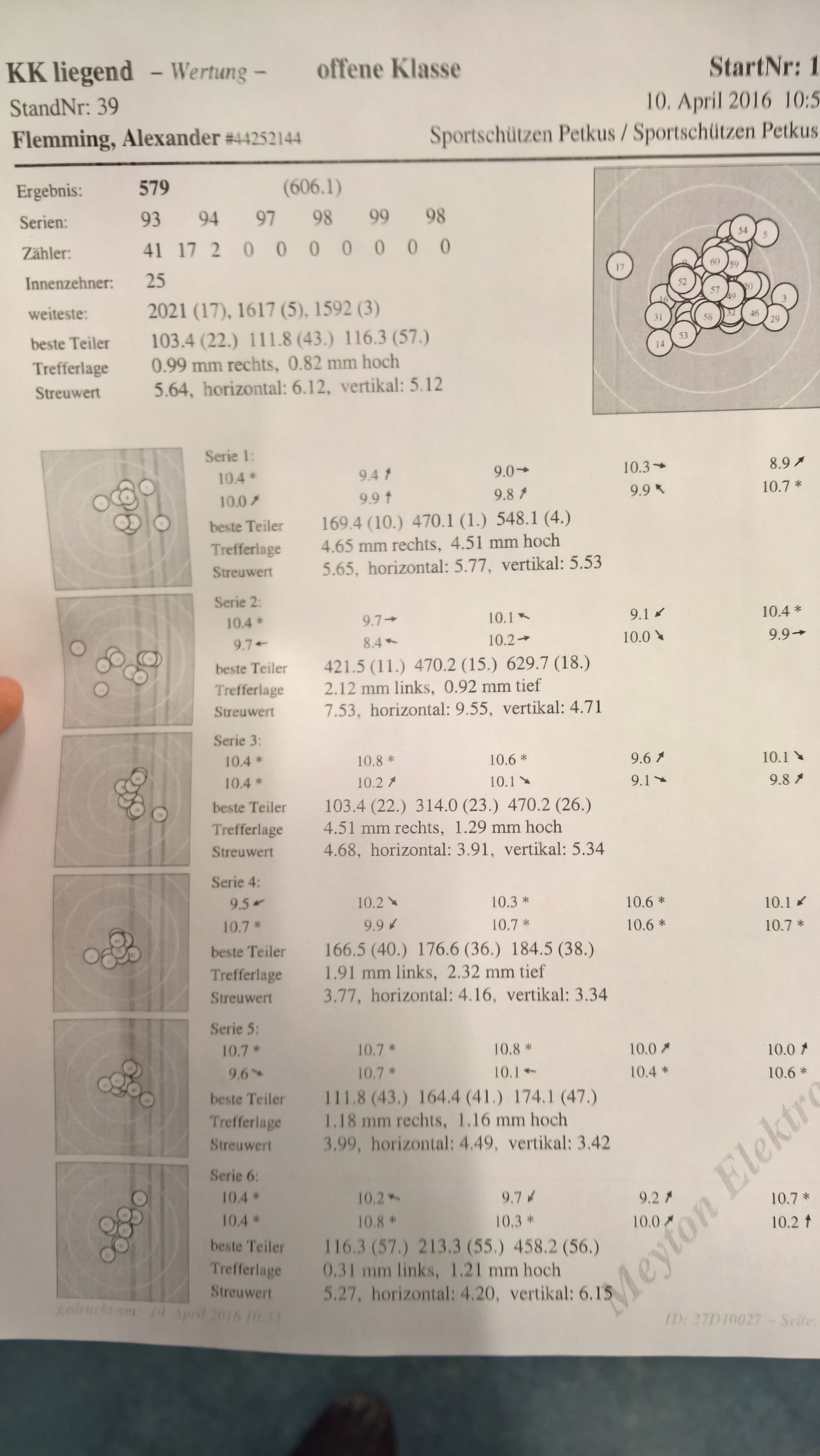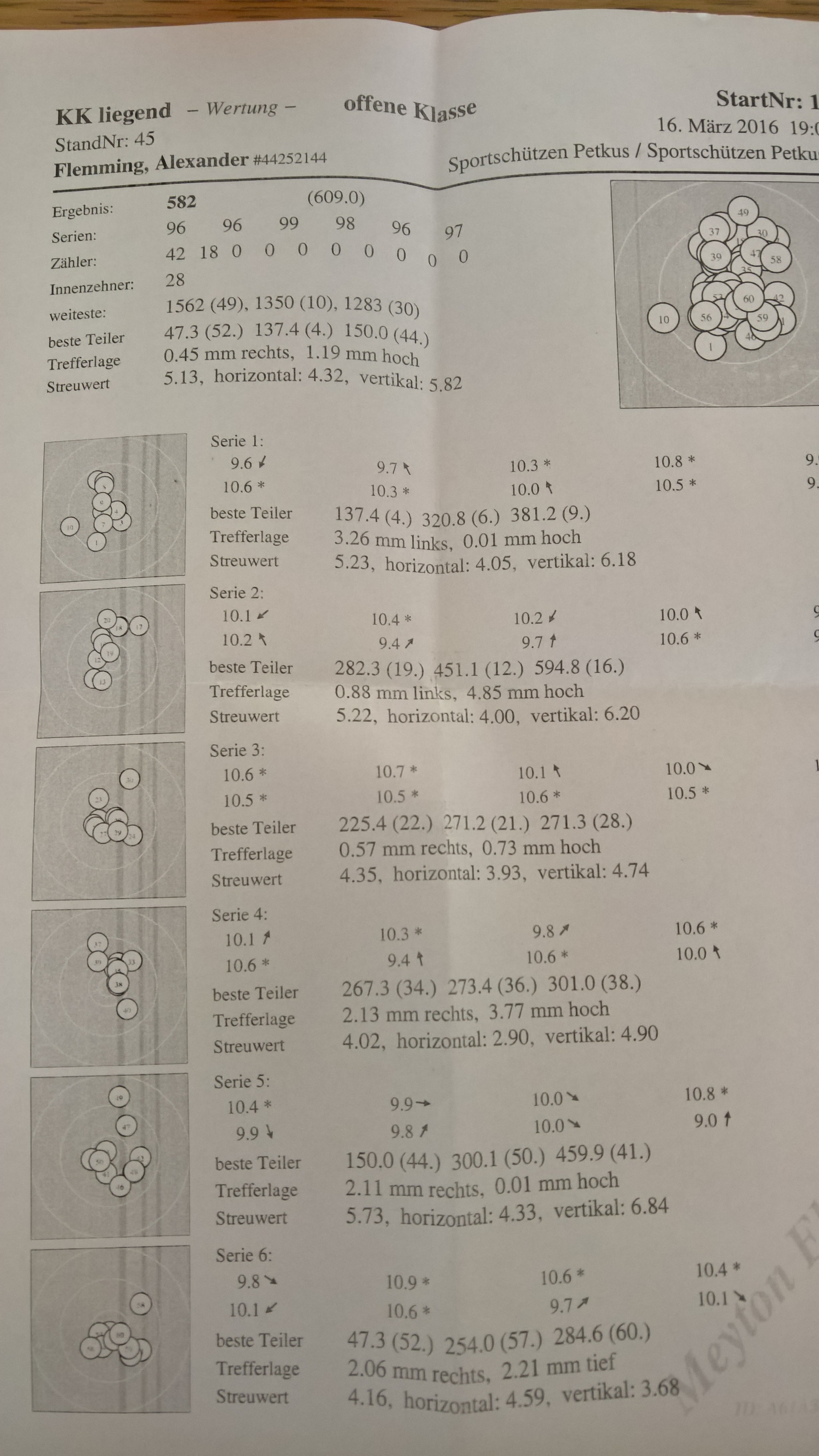 • Gestern im verschärften Training (wg. LM) zwei Serien mit voller Ringzahl und gleichem Zehntelwert geschossen.
