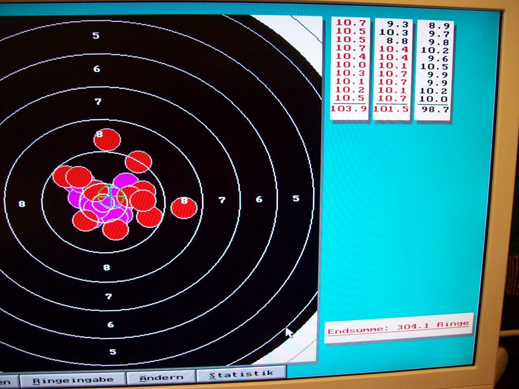 Stark ist dann allerdings das KK Ergebnis mit meiner Trainingsmunition von gestern mit 293 (!) und 100,8/103,7 und 102,5 = 307,0 in der Zehntelwertung.