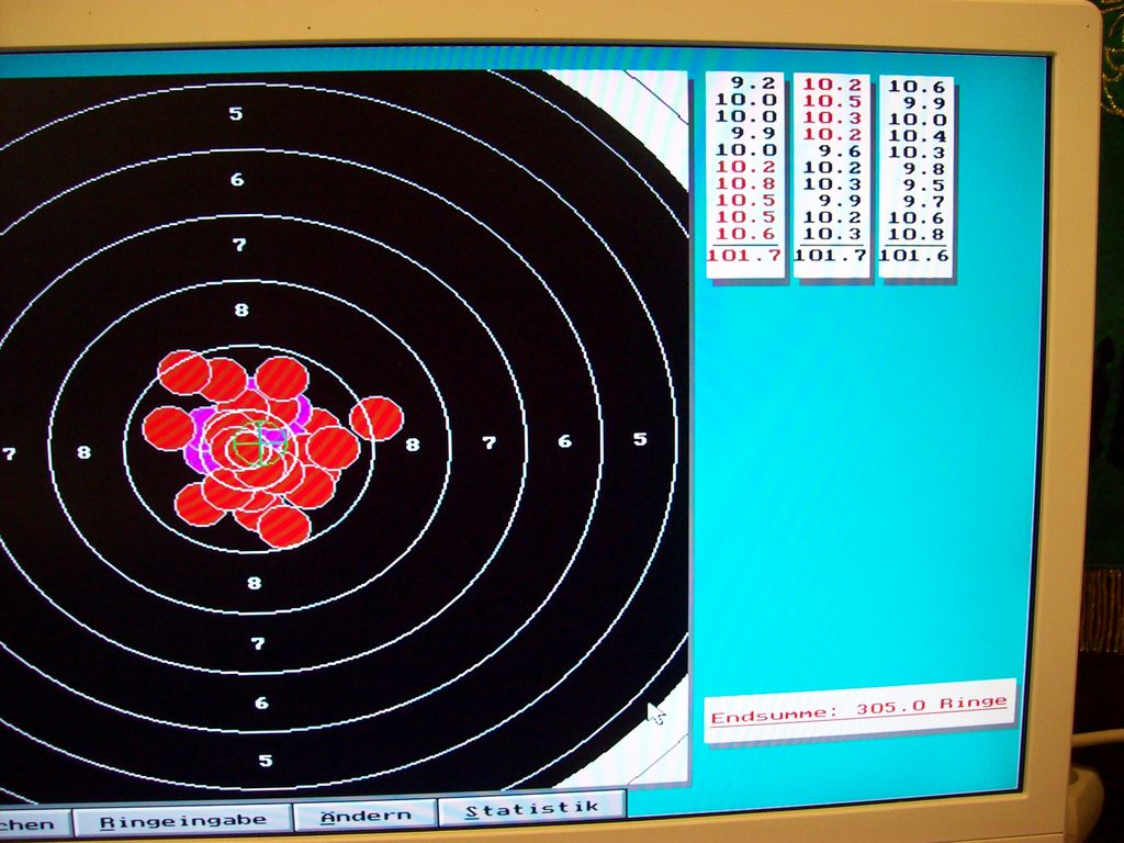 1/10tel Wertung 101,7 / 101,7 / 101,6 = 305,0 Ringe