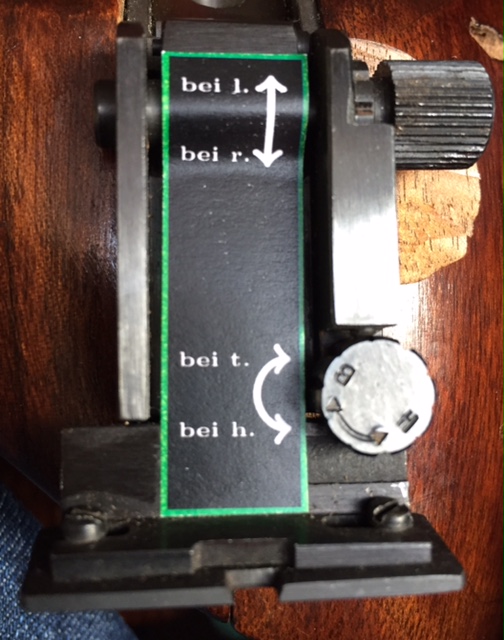 Noch etwas möchte ich sagen, in der mir bekannten Bauweise der Diopter gibt es kein Linksgewinde sondern die logische Denkweise Schraube hinein drehen drückt die Diopterscheibe tiefer oder eben nach rechts und in die Richtung verschiebt sich auch der Treffpunkt.