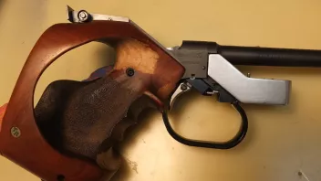 Ein weiterer Vorteil für mich ist, daß das Züngel noch weiter unter den Zeigefinger gebracht werden kann, als bei der 150. Ich überlege, ob ich so die Abzugsumgebung herstellen kann, die Melentjew an seiner MC55-01M hatte.