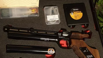 Feinwerkbau 900 aufgelegt, CZ75-sport 2, Pardini SP, Anschütz Match 54 Auflage, Ruger American Rimfire Target Thumbhole, Tippmann M4-22 elite