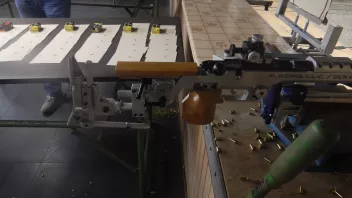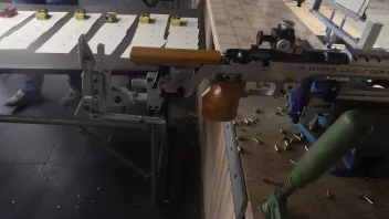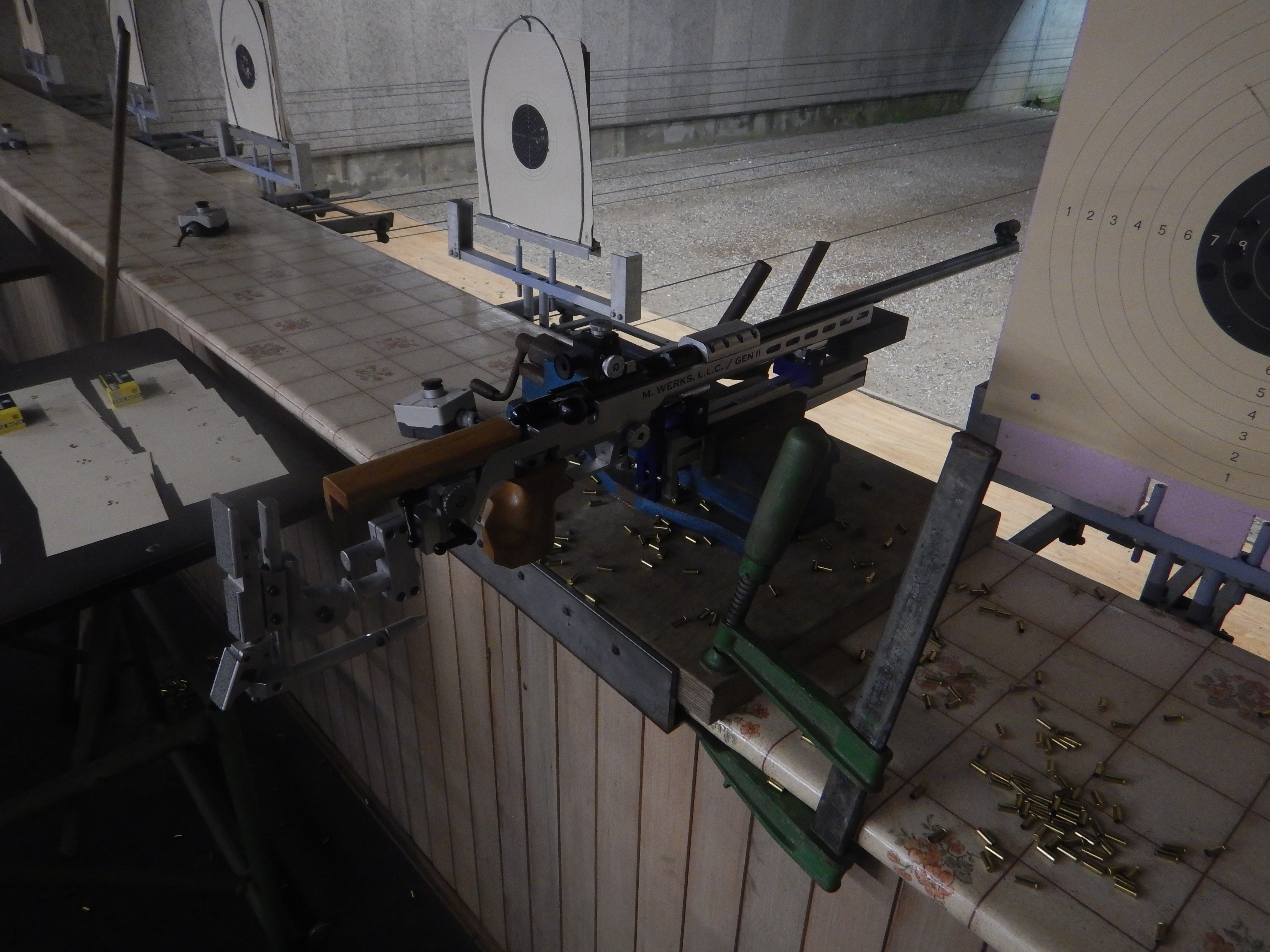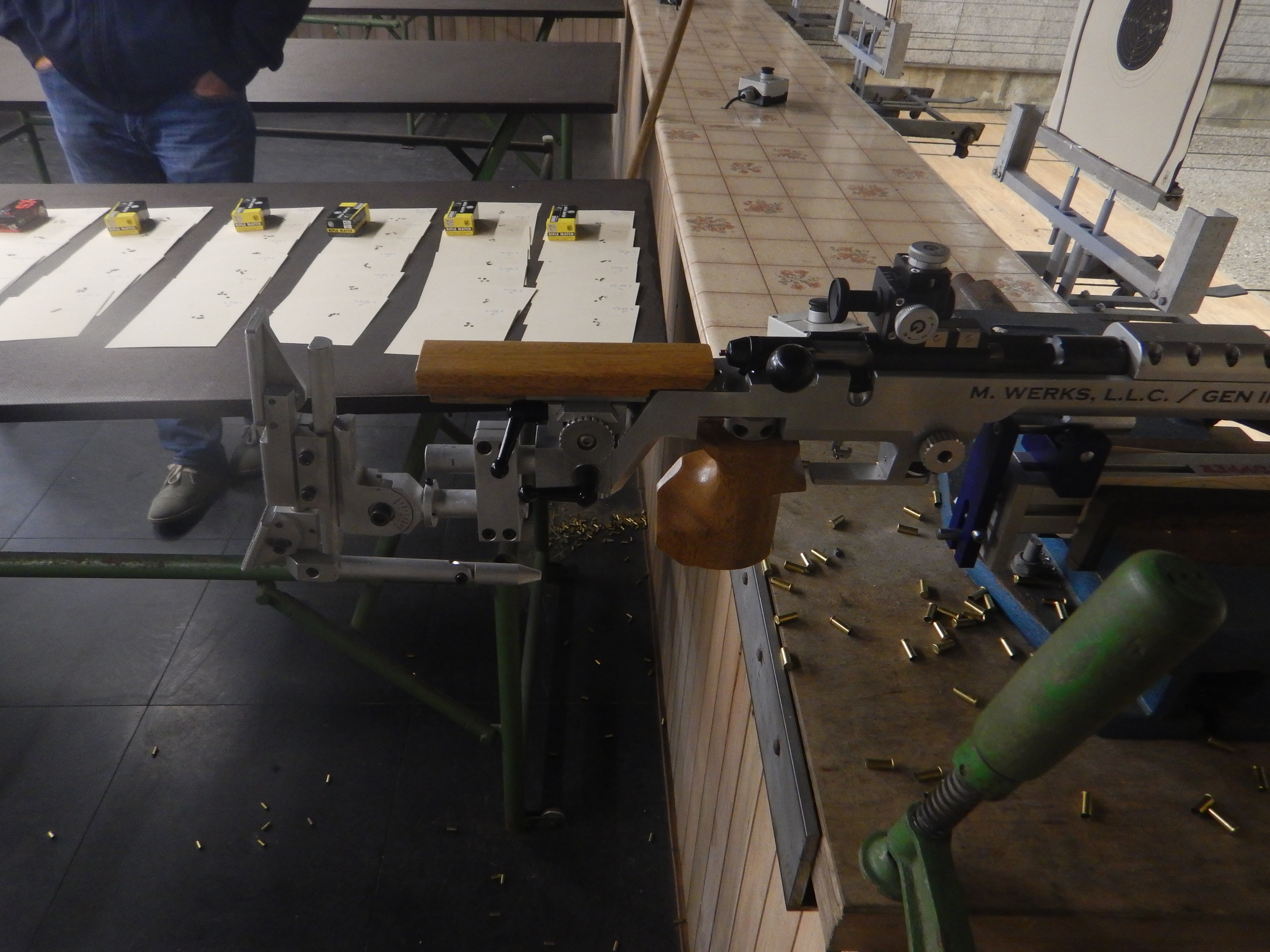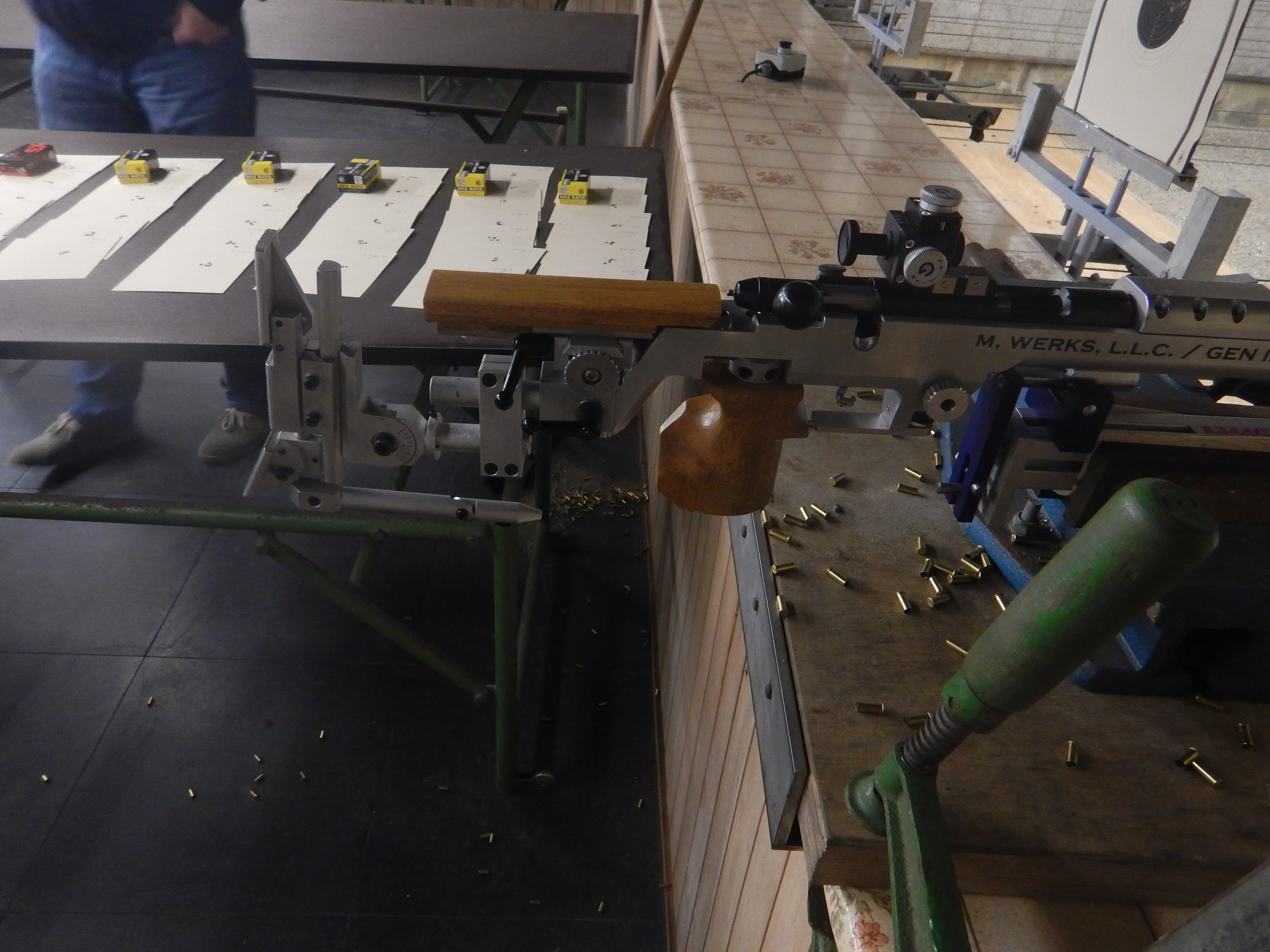 Testaufbau: Gewehr auf Stopper Einschießmaschine, 50m.