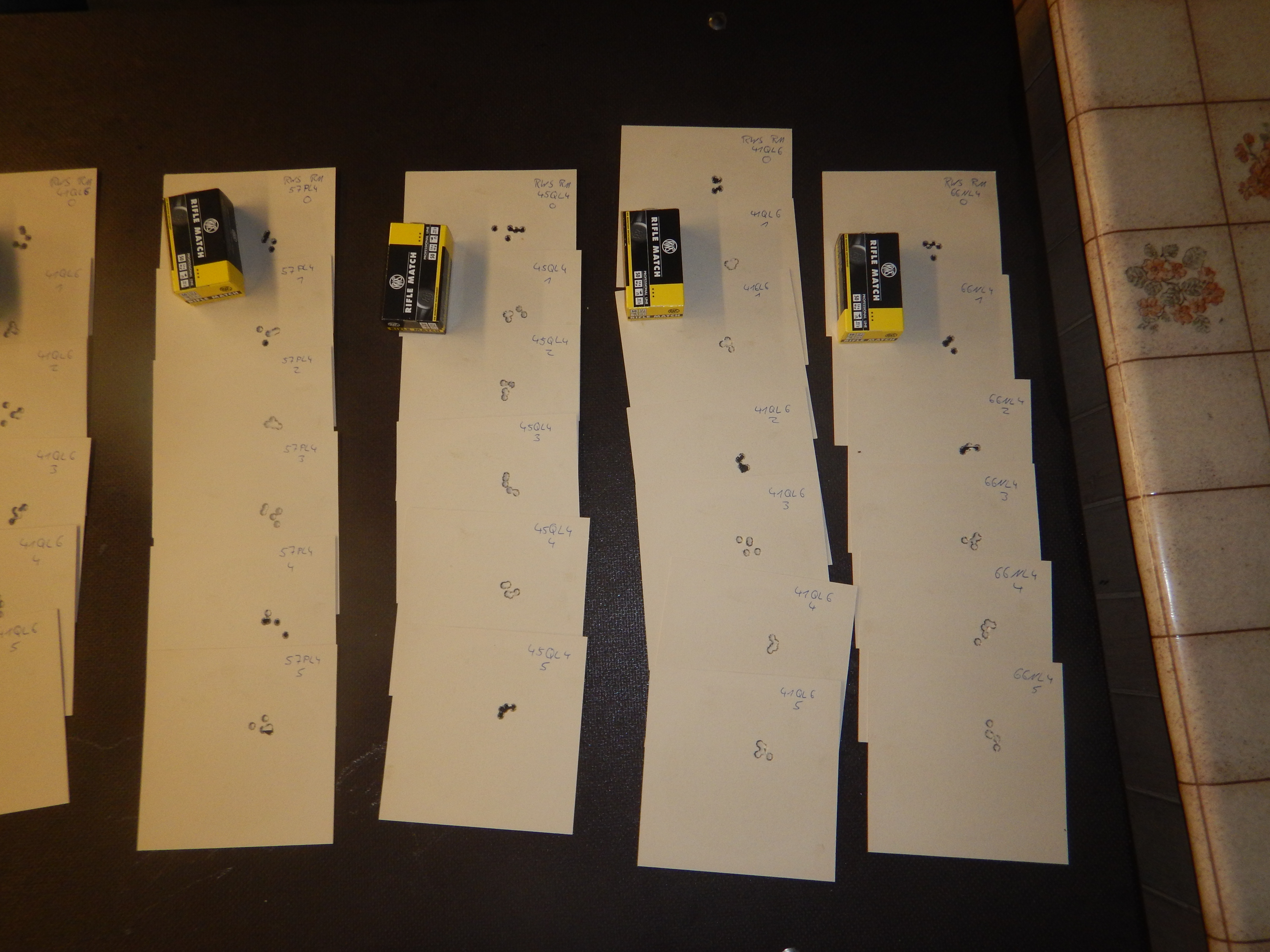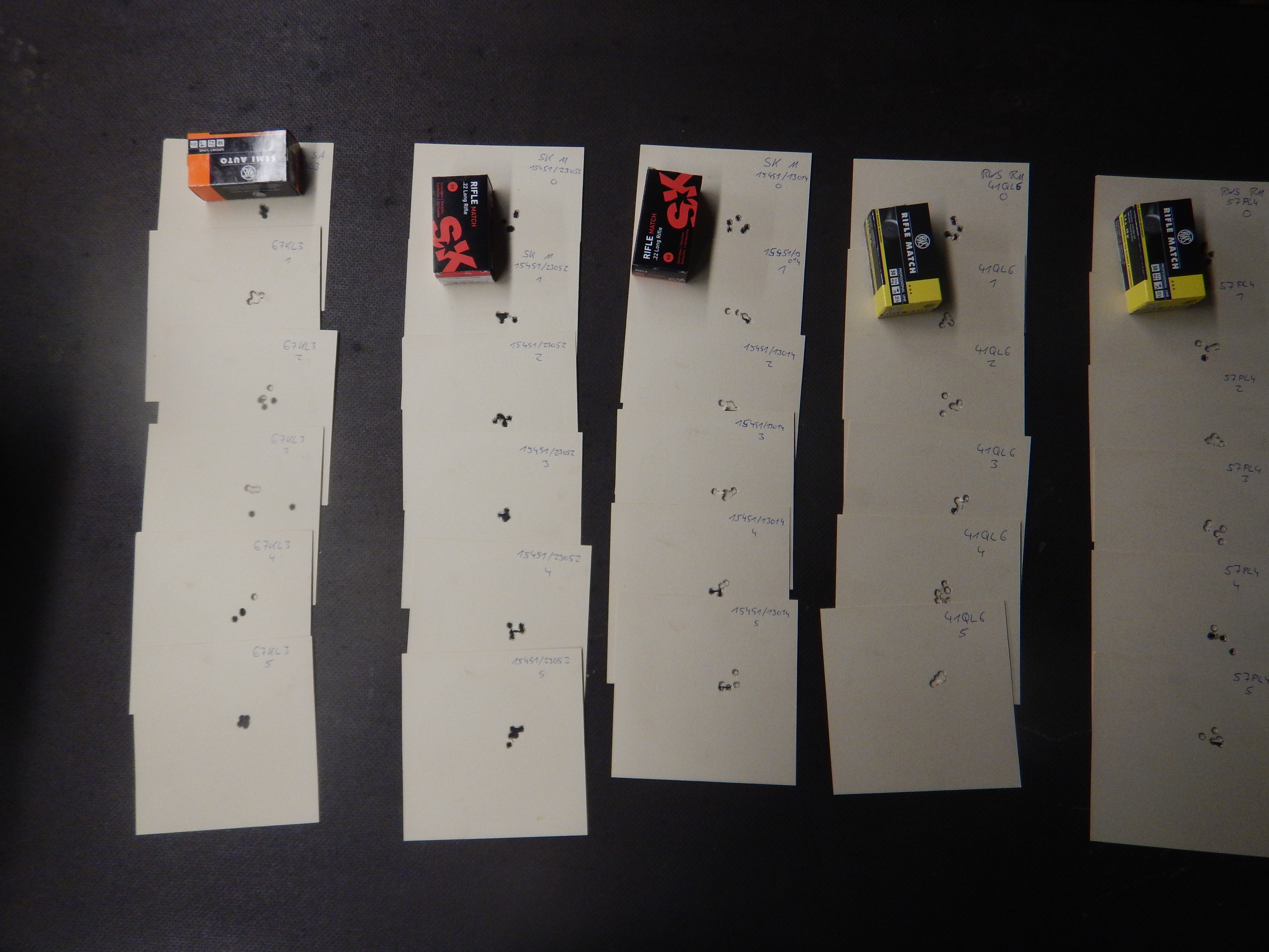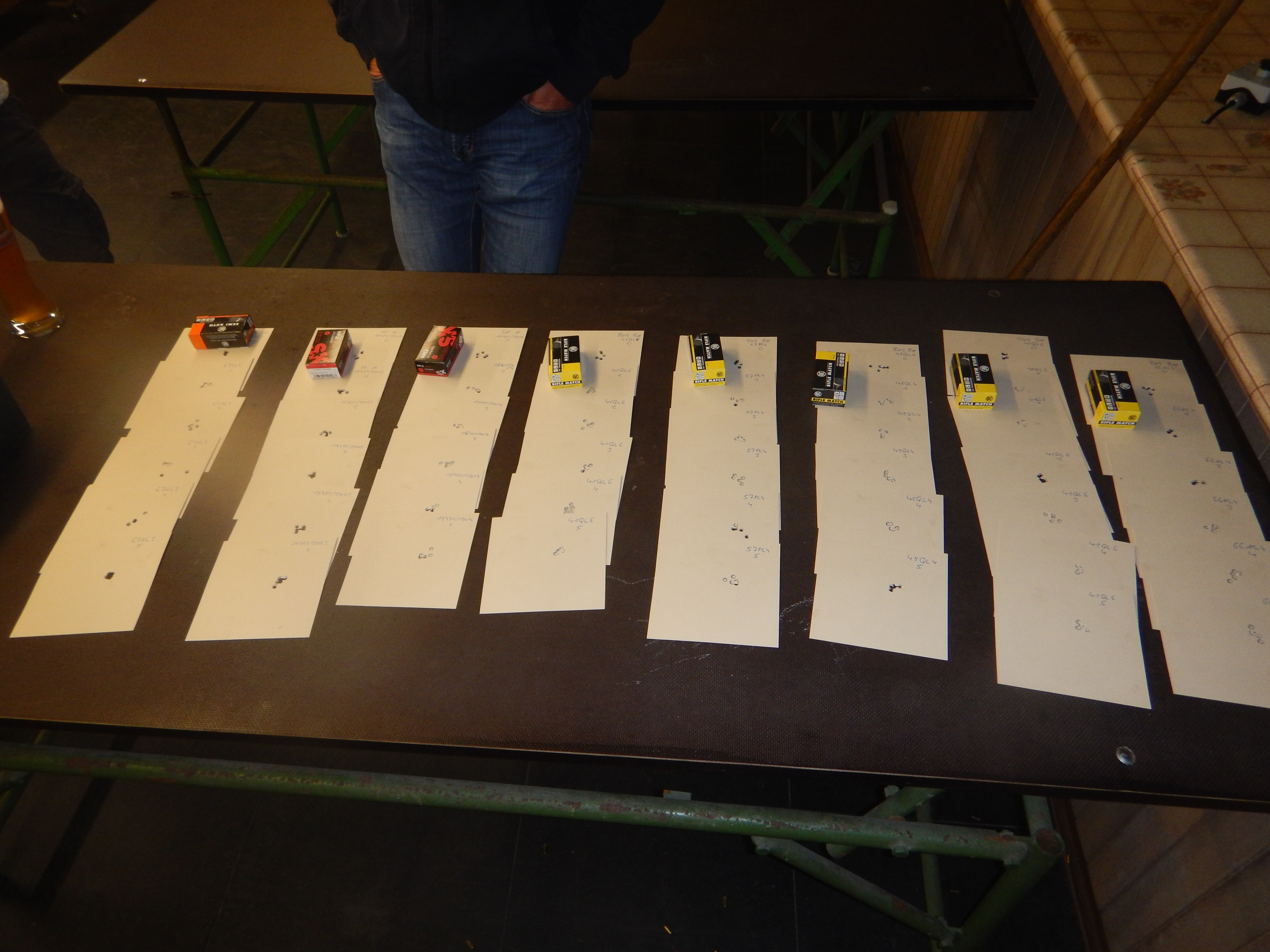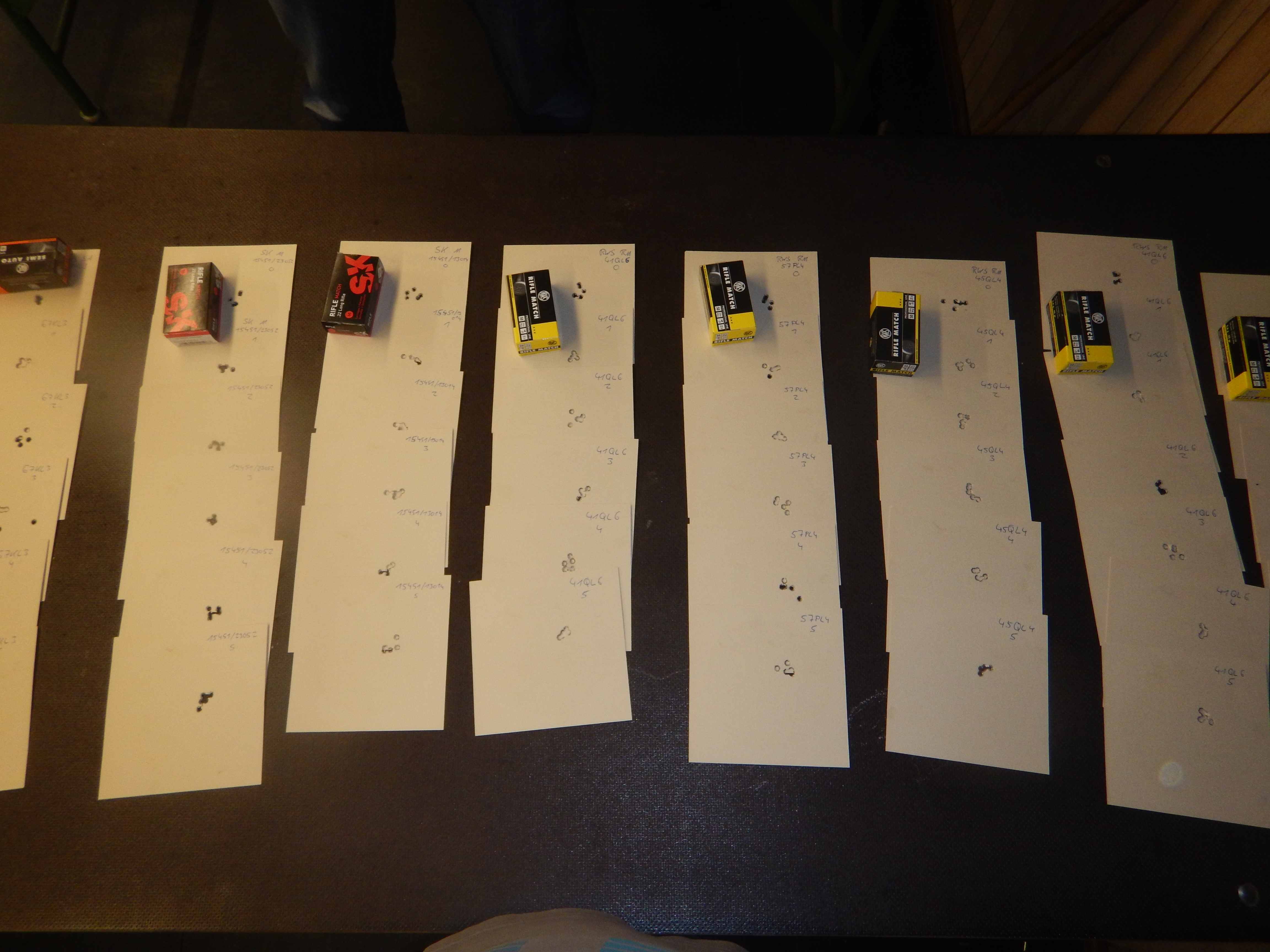 Letzten Donnerstag fanden wir dann endlich mal Zeit den Schaft in die Einschießmaschiene zu spannen und mit ein paar Losen RWS Rifle Match, ein Los RWS Semi Auto und zwei Losen SK Match den Test zu machen.
