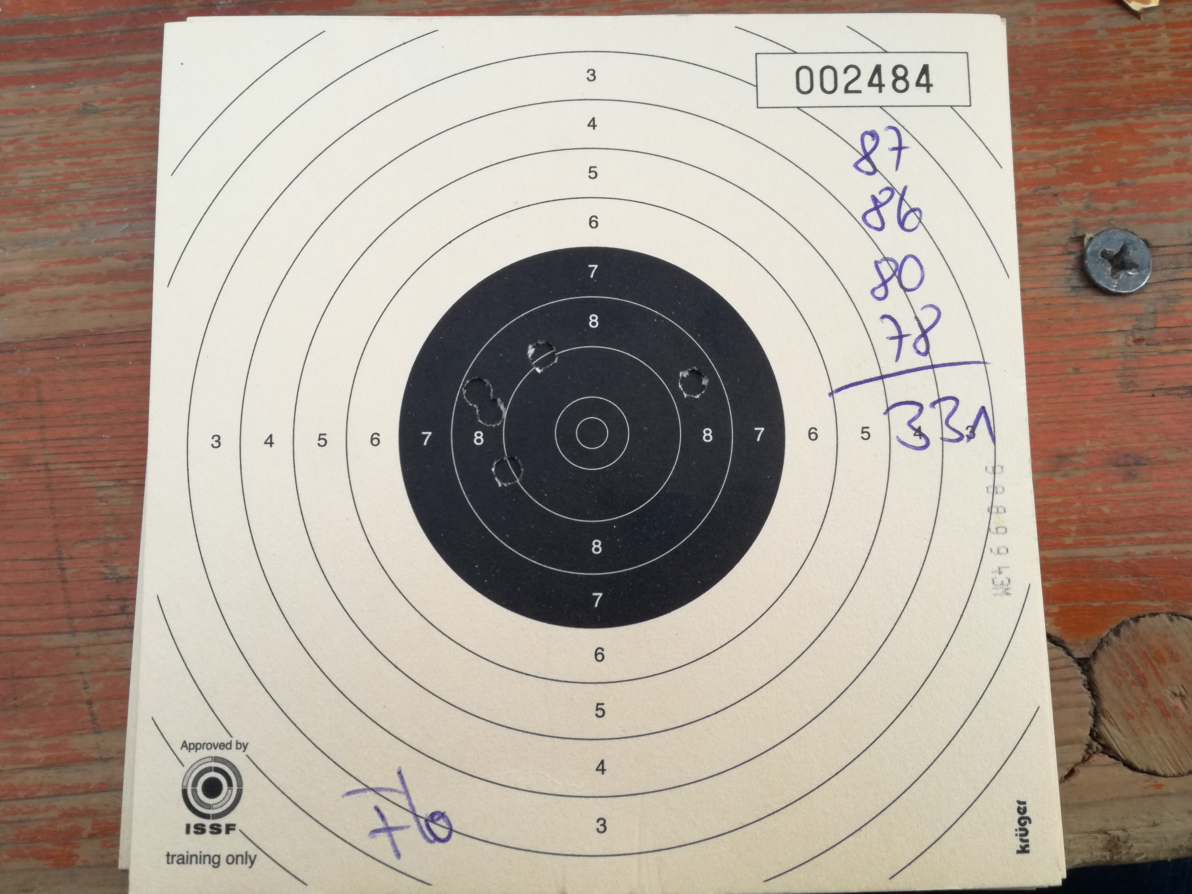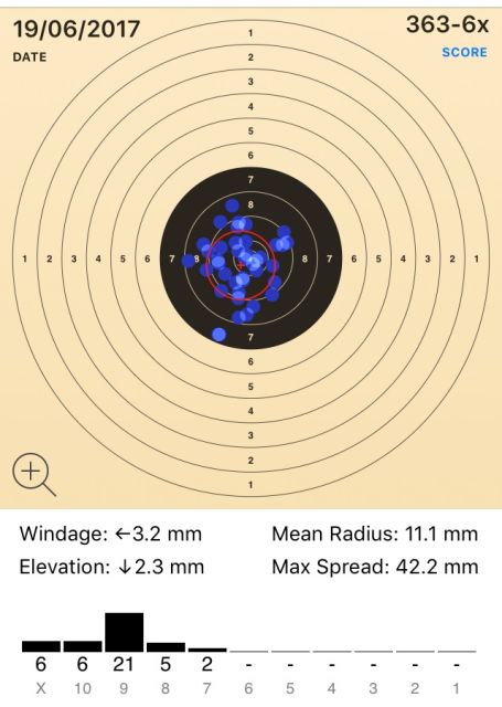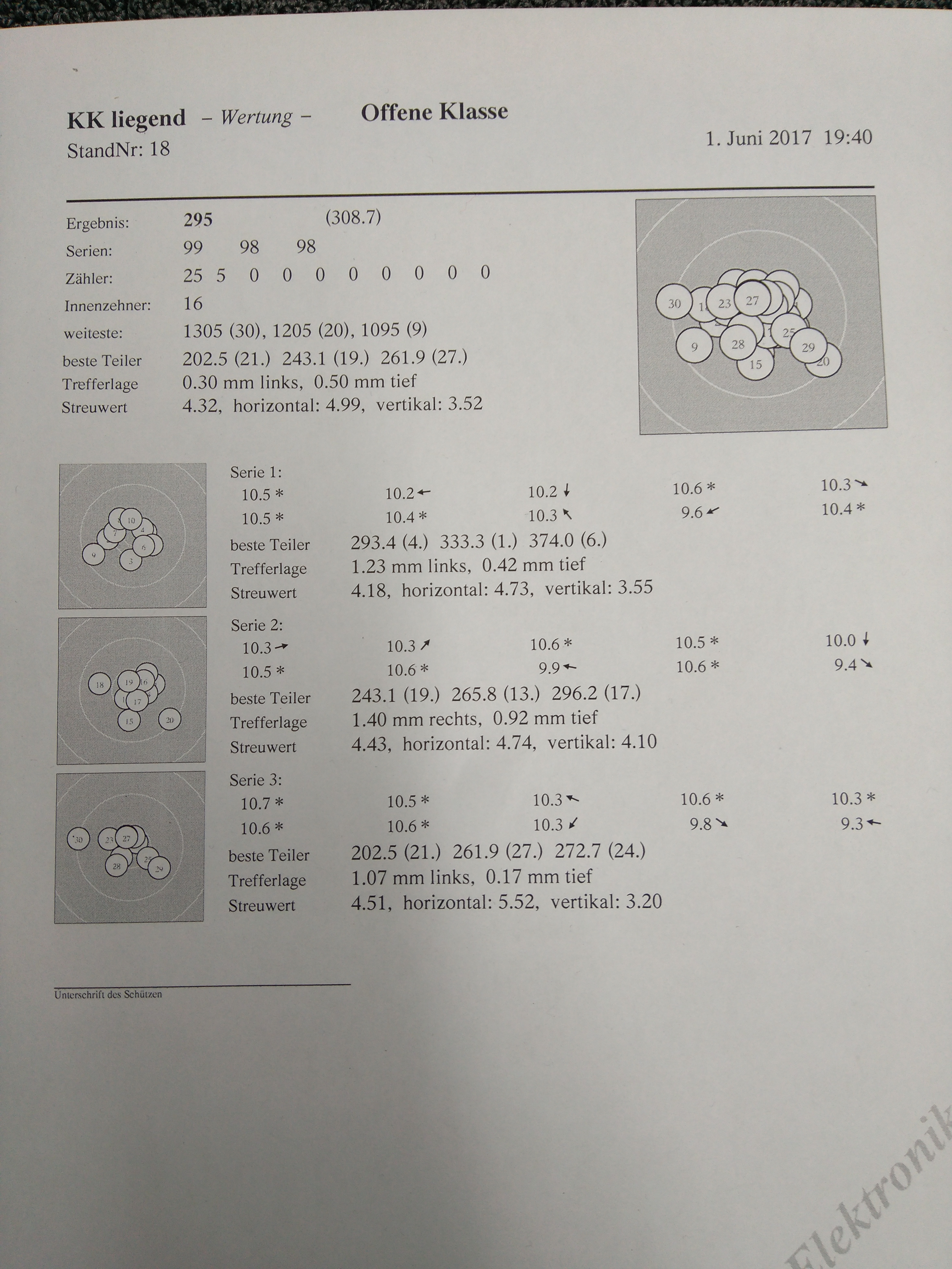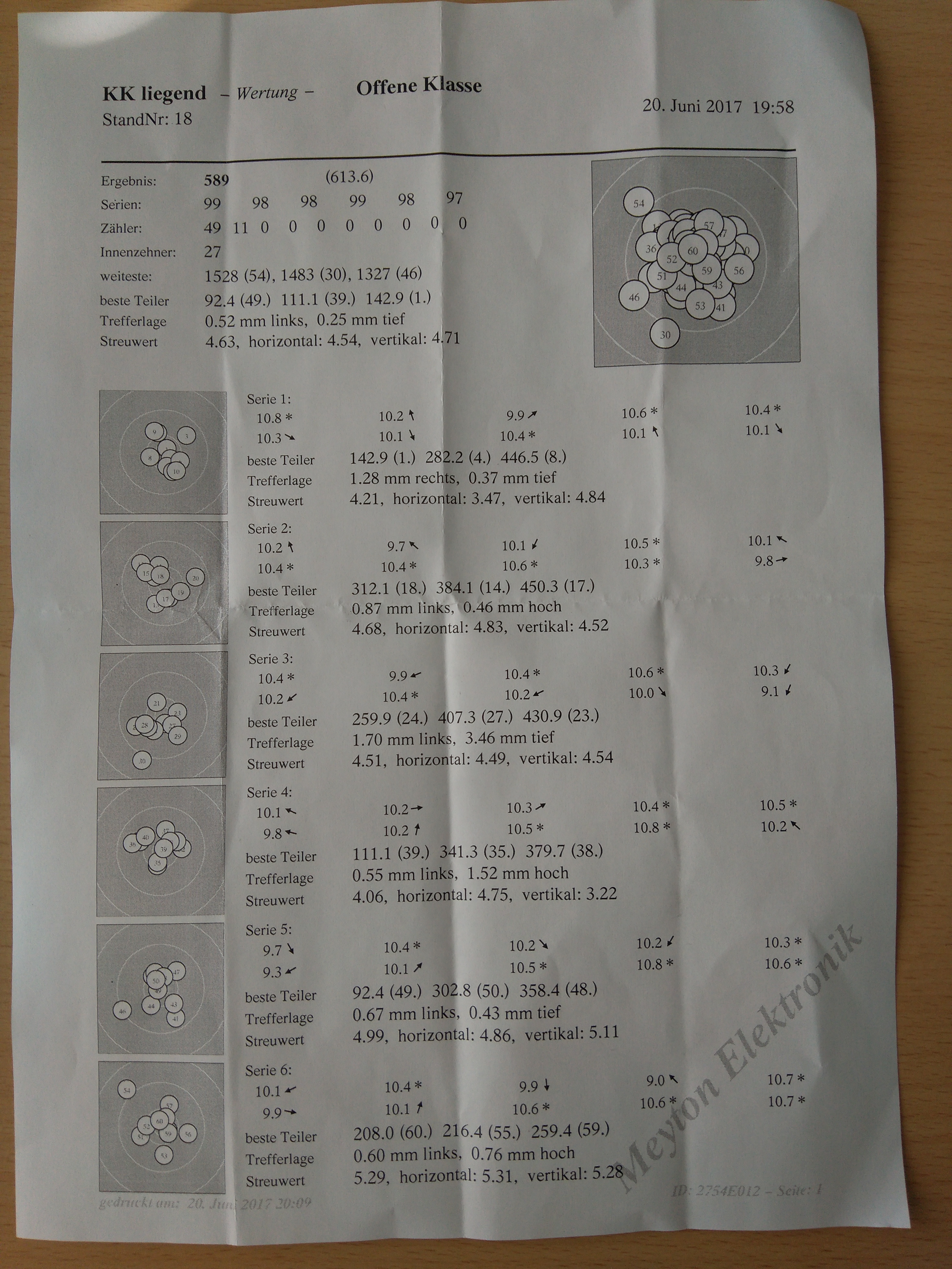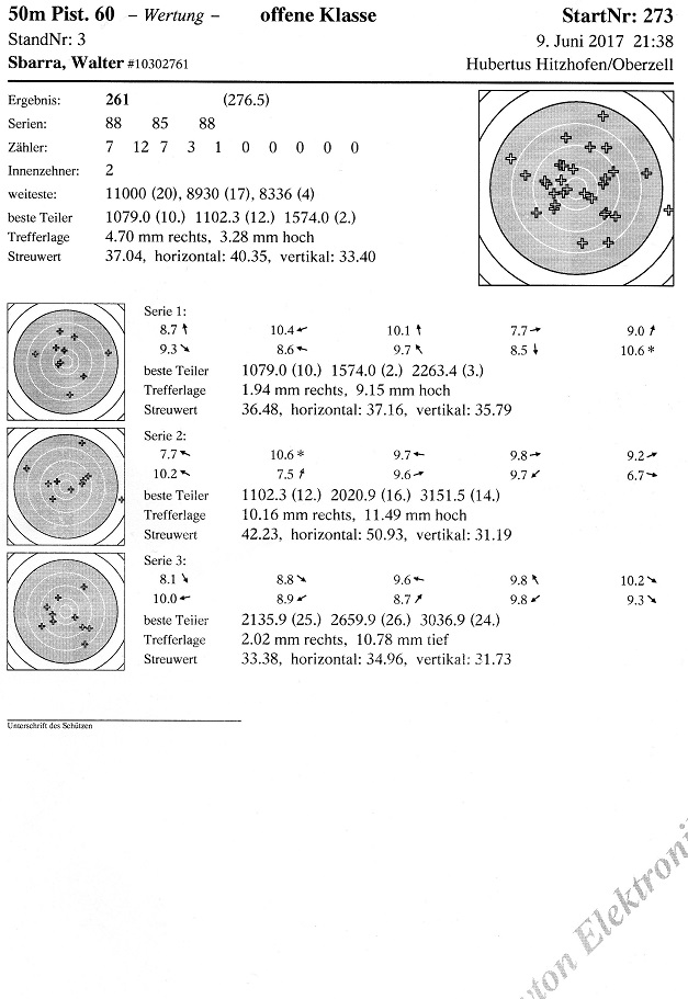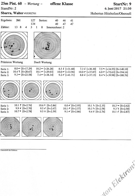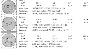 endlich mal wieder ein zufriedenstellendes Trefferbild ohne 8, wobei die 9, 0 in der zweiten Serie war extrem knapp