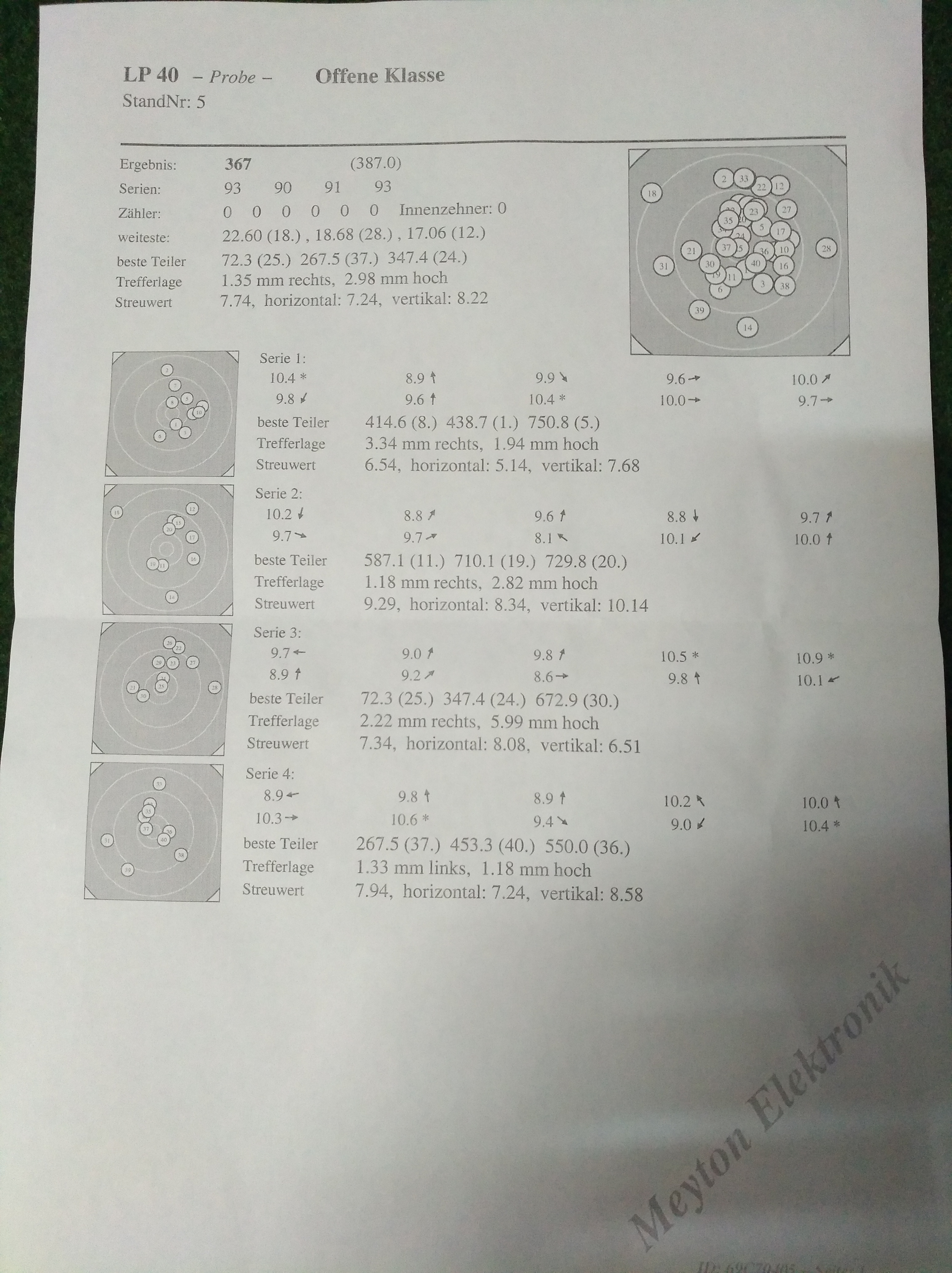 Strindberg, danke für die Antwort. Bleibt aber nur bei LP da ja die DSB Regeln gelten. Habs erst später gelesen. Schieße erst seit März mit der Lupi und da mehr aufgelegt (Regelwerk ÖSB). Daher werden die vorderen Plätze noch warten müssen J.