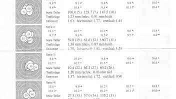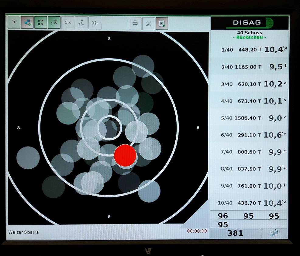 Gruss RolfHm, kannst du mir erklären warum keine 40 Schuss wie es diese Disziplin eigentlich vorsieht? Oder das halbe Programm? Ich müsste jedes mal aus der Reihe tanzen wollte ich das dokumentieren. Und wenn ich 15 Schuss auf eine Präzisionsscheibe mache wird es schon mal schwierig alle Treffer zu sehen. Aber gut, jetzt ist es so und ich habe mal per Spektiv mitgeschrieben (11-15 Schuss)
