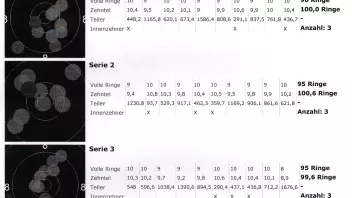 zehntelwertung 106,3 / 104,9 / 106,2 = 317,4 Ringe