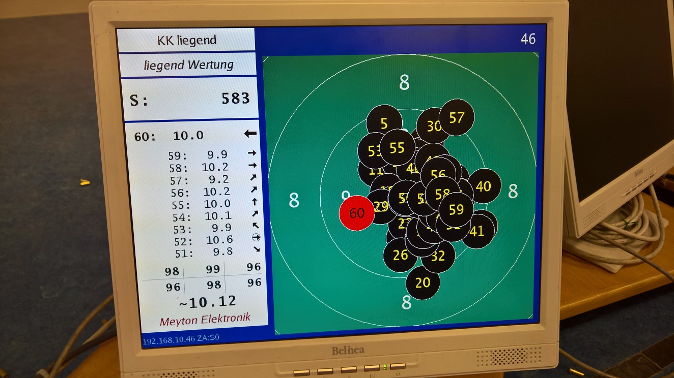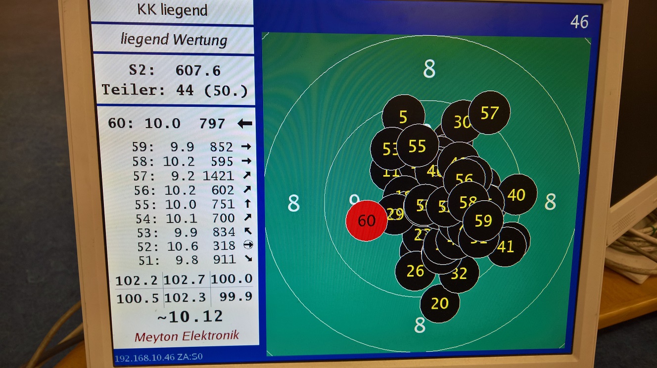 Letzter Wettkampf 311,9 mit vier schwachen 9 er, wobei mindestens 0,8 Ringe je Schuss liegen gelassen wurden.