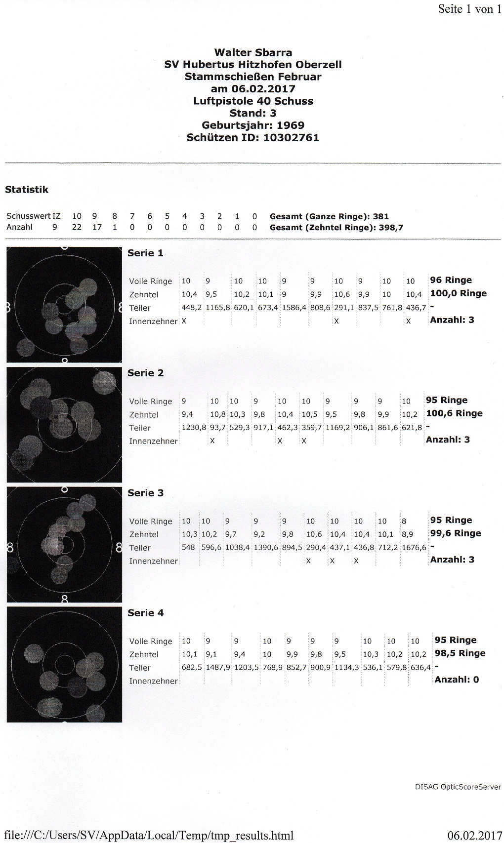 Und hier auch schon mein LP Ergebnis für den Februar: 364 Ringe (91-89-92-92)