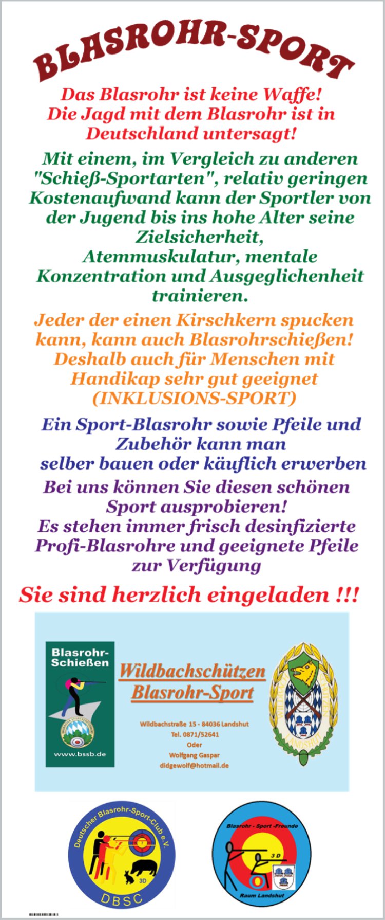 Seit dem 2. Januar bin ich Mitglied bei den Wildbachschützen in Landshut und baue dort eine Blasrohr-Sport Mannschaft auf.