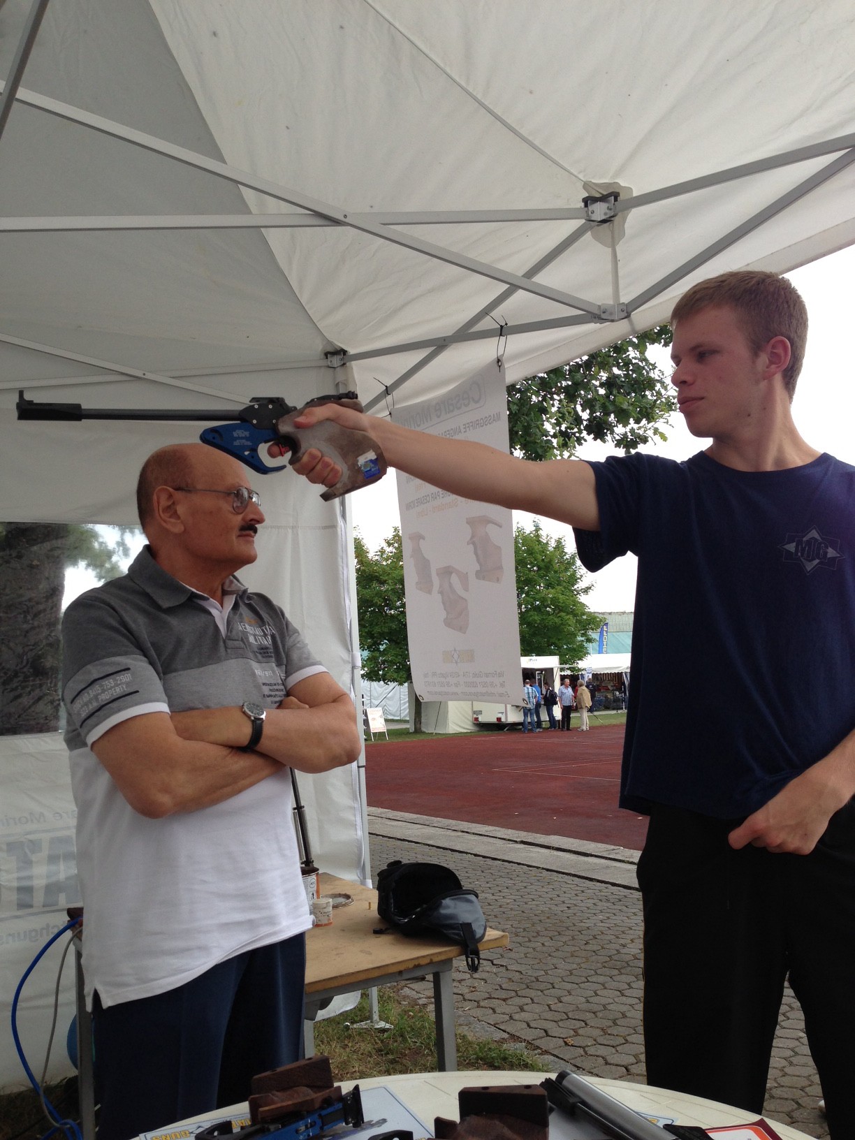 Wie schon an andere Stelle erwähnt, habe Jahrelang bei WM, EM Worldcups und IWA bei Cesare Promotion gemacht, und konnte Ihm oft über die Schulter schauen beim Griff erstellen, hier z. B. bei meinem besten Schützling Freddi Grabs, EM Teilnehmer und deutscher Meister FP.