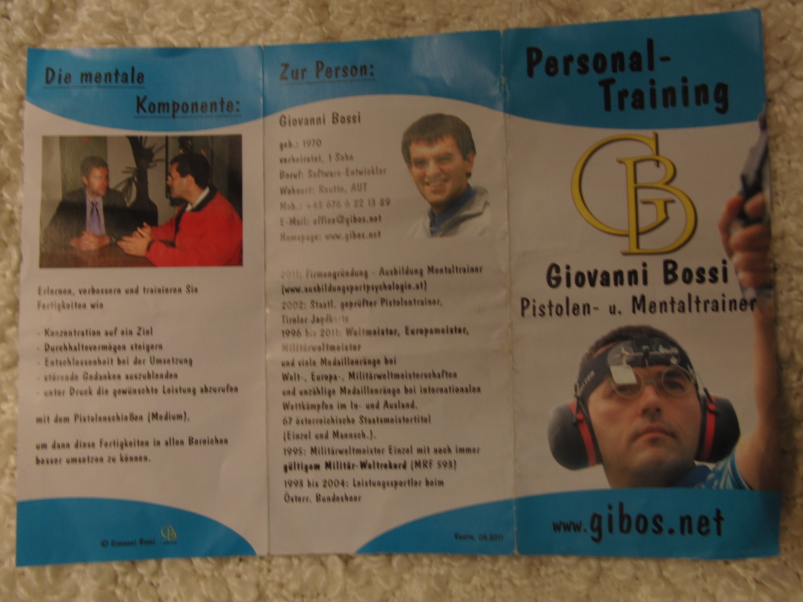 ich setze Euch mal einen Flyer ein, von einem guten Schützenkameraden von mir aus Österreich, Giovanni Bossi, Weltmeister, Europameister, Militärwetlmeister und Weltrekordhalter (MRF)