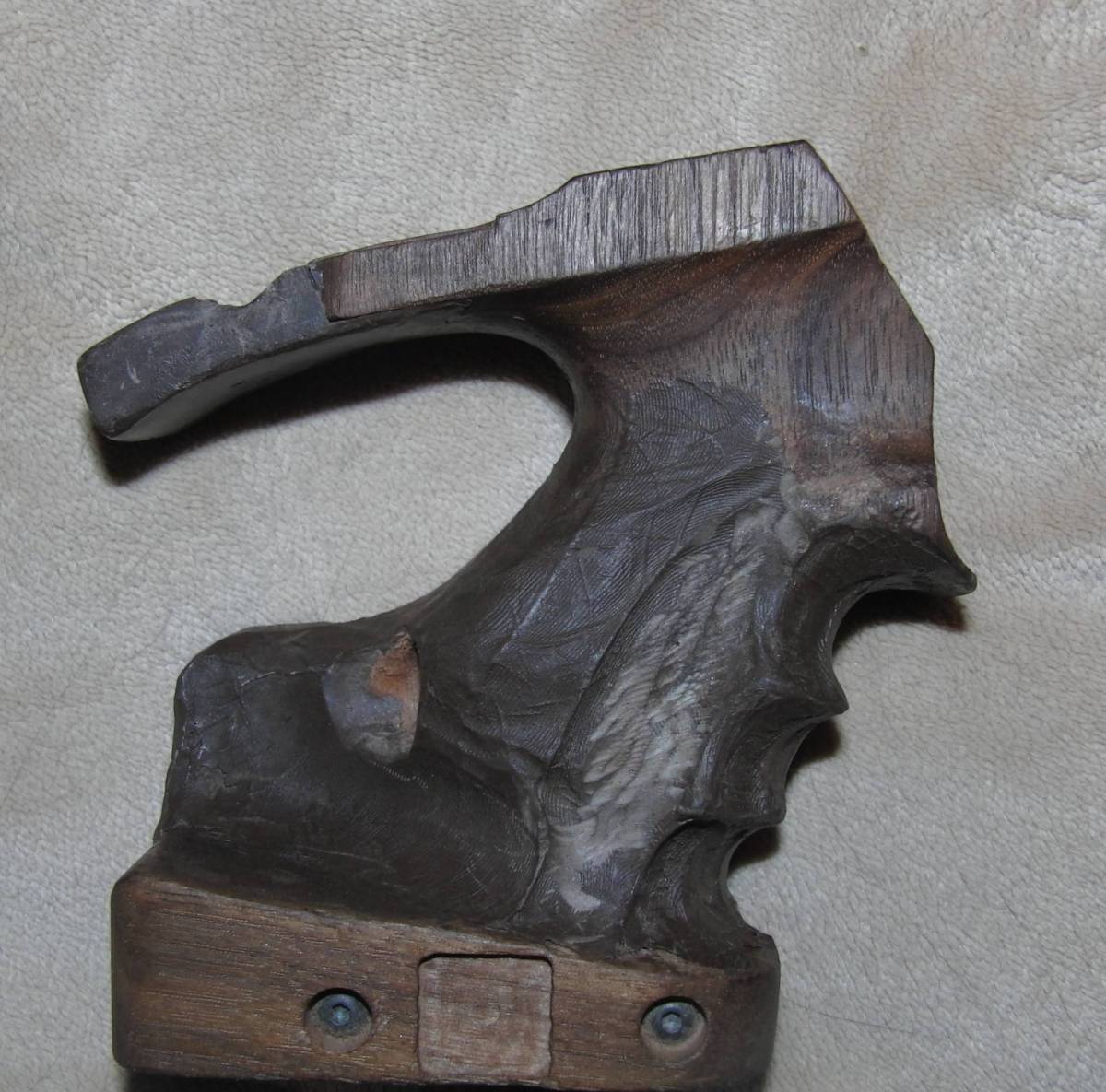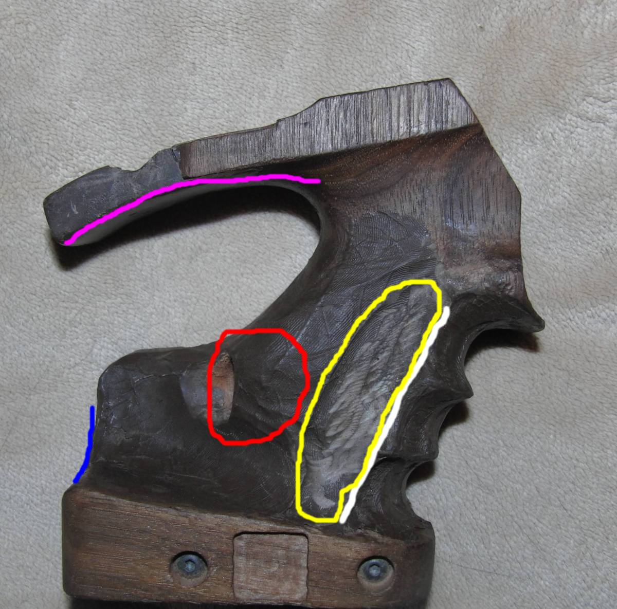 Jedenfalls hats mich dermaßen geärgert dass ich erst mal mein Schnitzmesser mittendrin rausgeholt habe und eine störende Ecke weggeschnibbelt habe. Im Training oder bei kurzen Serien macht man sich oft keinen Kopf über Ursache und Wirkung, oder kommt nicht drauf. Nun ist wieder ne Ecke weg ....