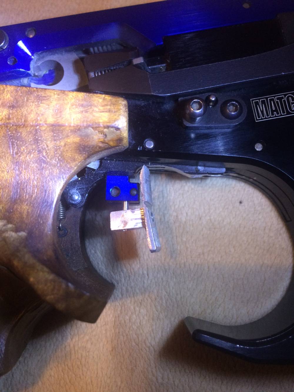 Danke für den Tipp, Bernd. Ich probier mal das Züngel, wenn es da ist und kann es ja ggf. zurücksenden. Wenn ichs richtig verstanden habe, wären wir dann bei sowas wie dem Walther Expert Züngel mit einem extra angefertigten Blatt. Und das sollte rechts neben der Achse (und damit außerhalb der Laufachse) montiert sein.