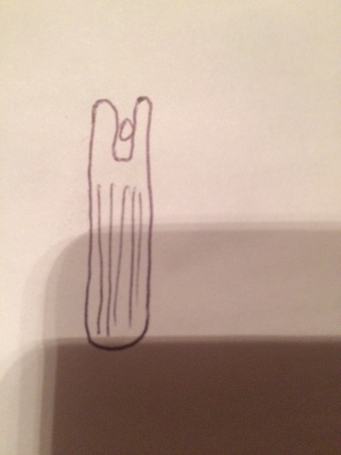 Die weissen Linien am Horn symbolisieren den Draht und die Schraube. In der Innenhand sind Analog die Farben und Zonen wie am Griff