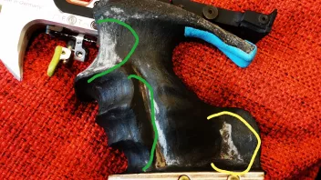 Muss den Griff der Steyr über die Weihnachtstage auch in Angriff nehmen aber vieleicht gibts ja bessere Spachtelmasse als den Kunststoffspachtel.