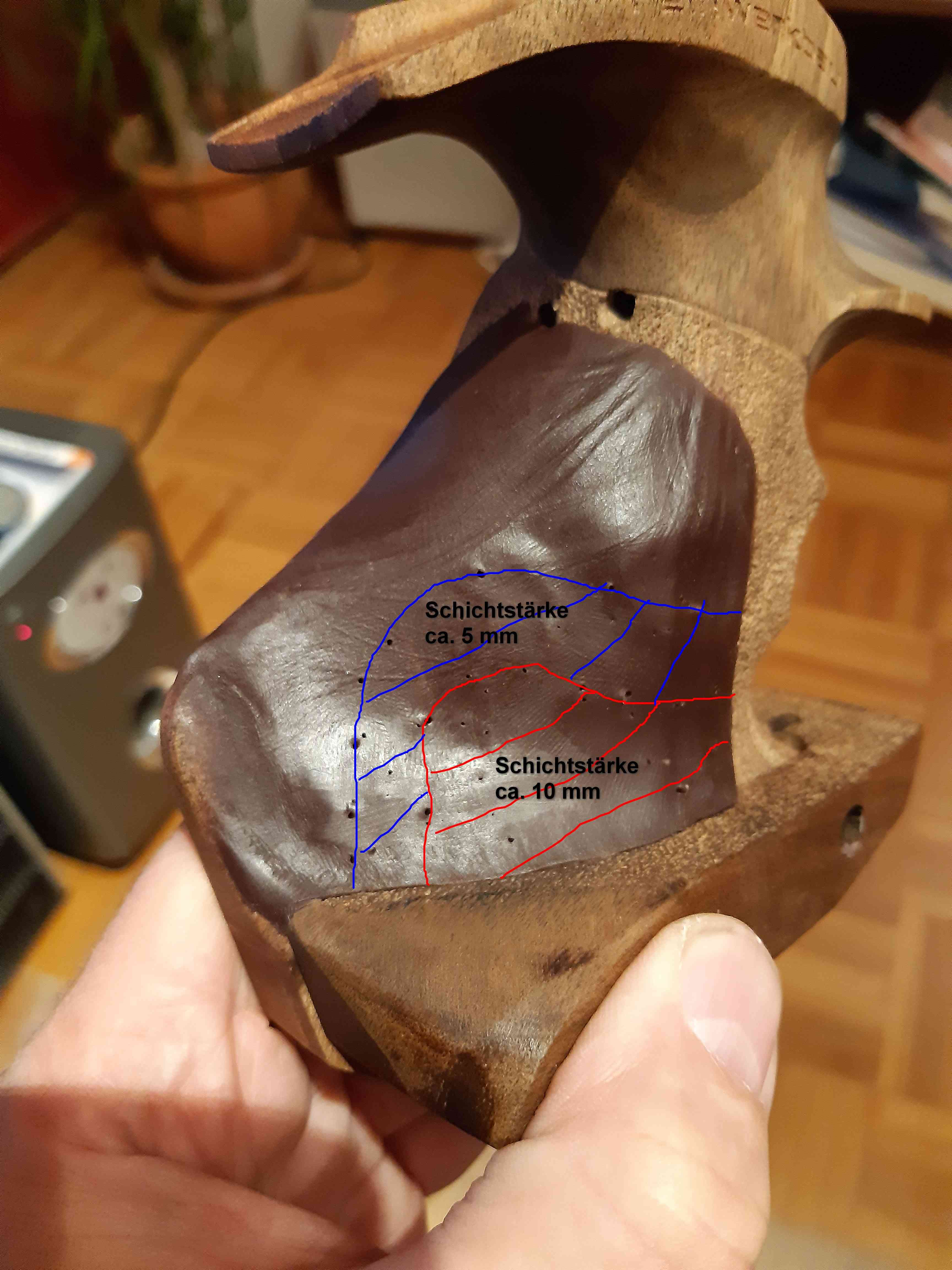 Als Versuch hab ich heute mal mit Knete einen ersten Abdruck gemacht um ein Gefühl dafür zu bekommen, wo wieviel hin muss.