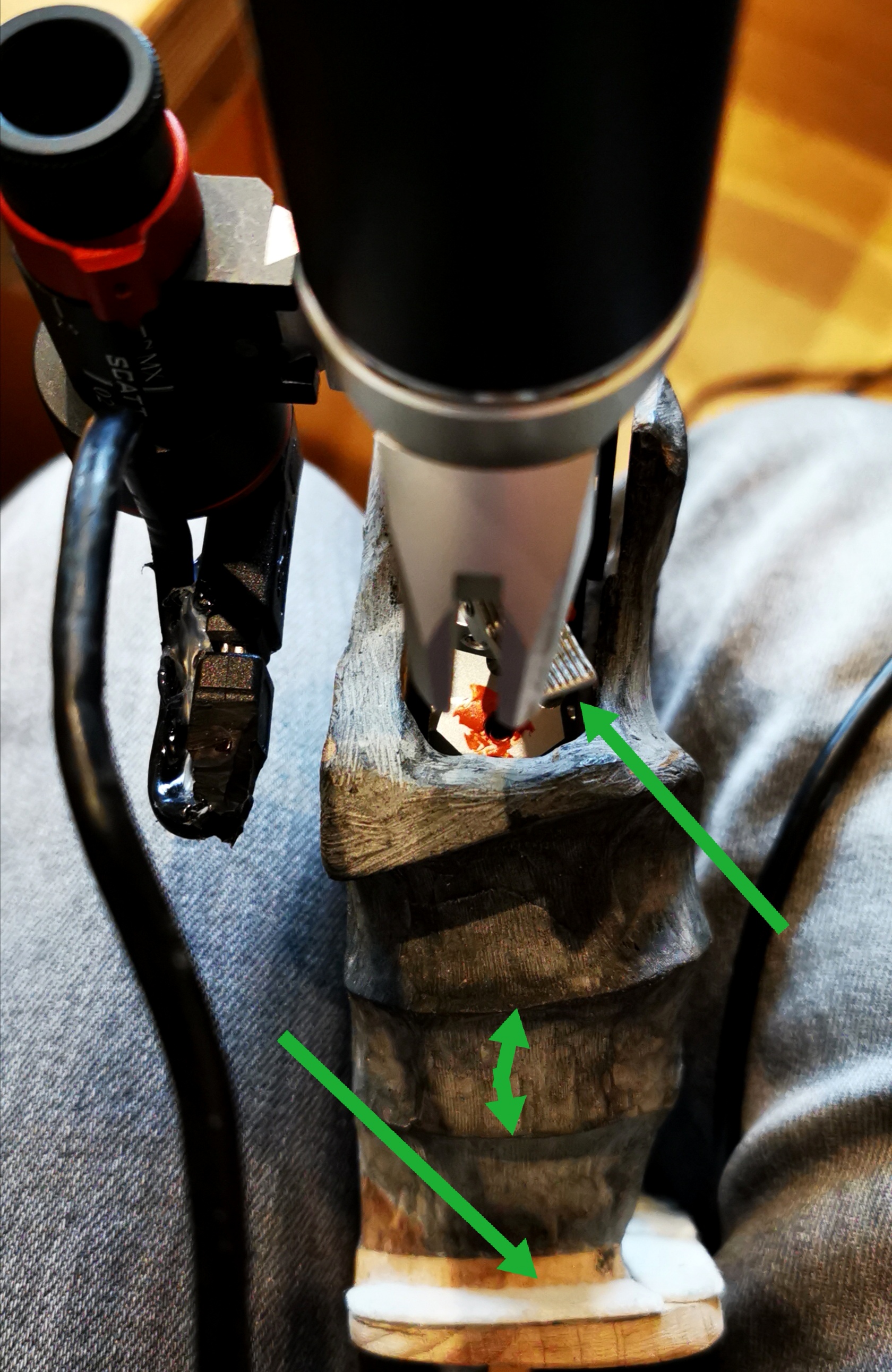 abgeknickt ist und im Innenraum vom Griff habe ich eine ca. 6,5 cm lange Bohrung mit 12mm Durchmesser rein gemacht
