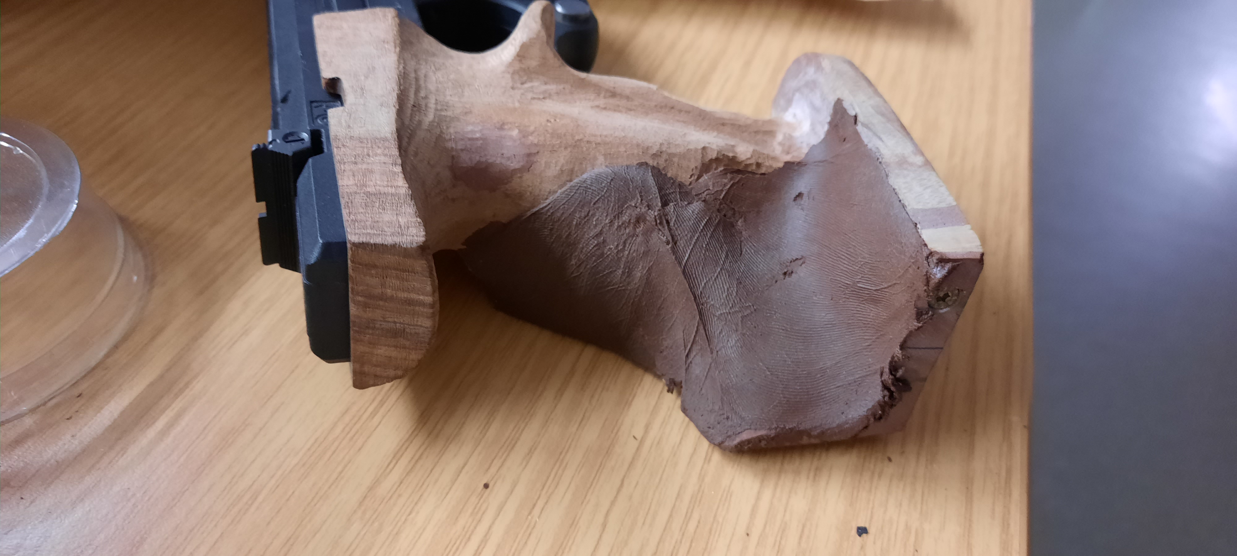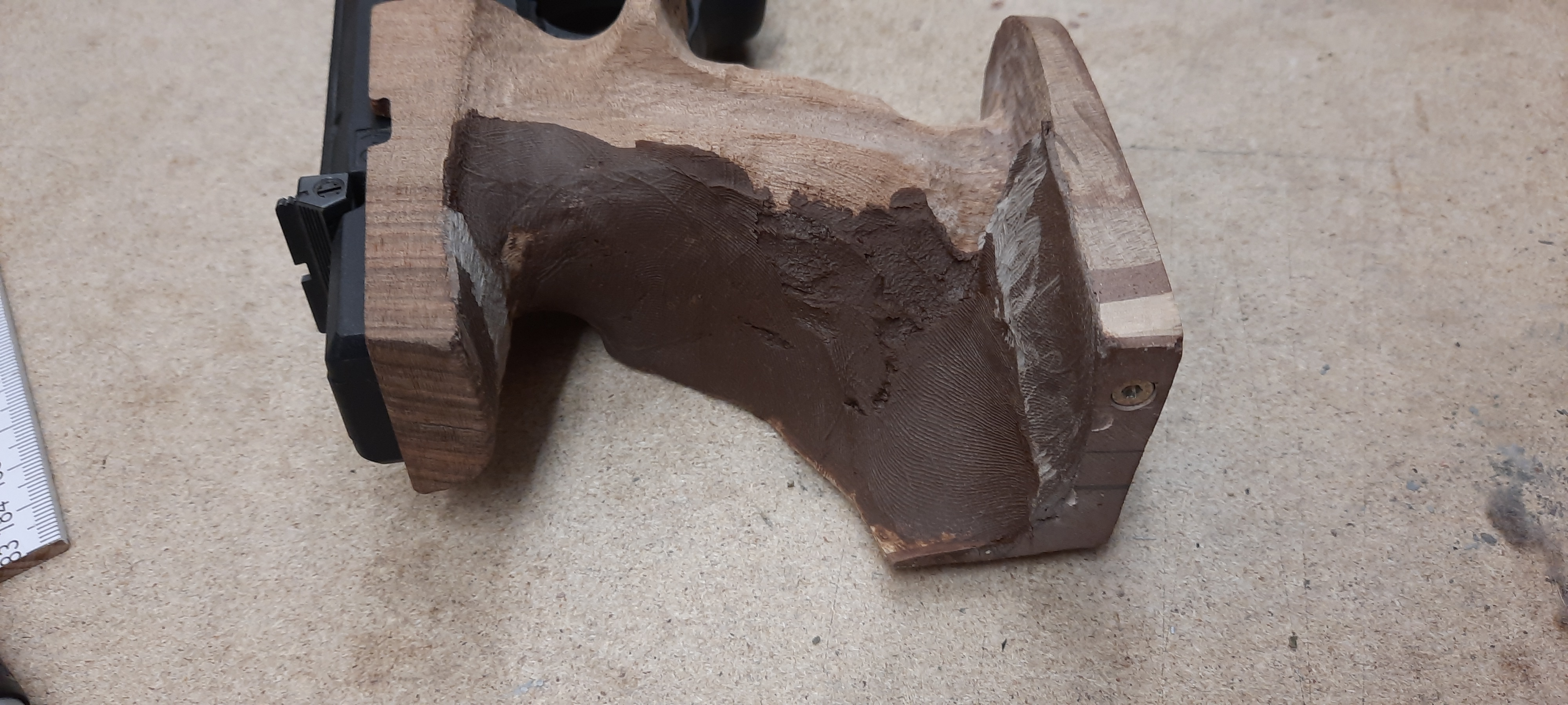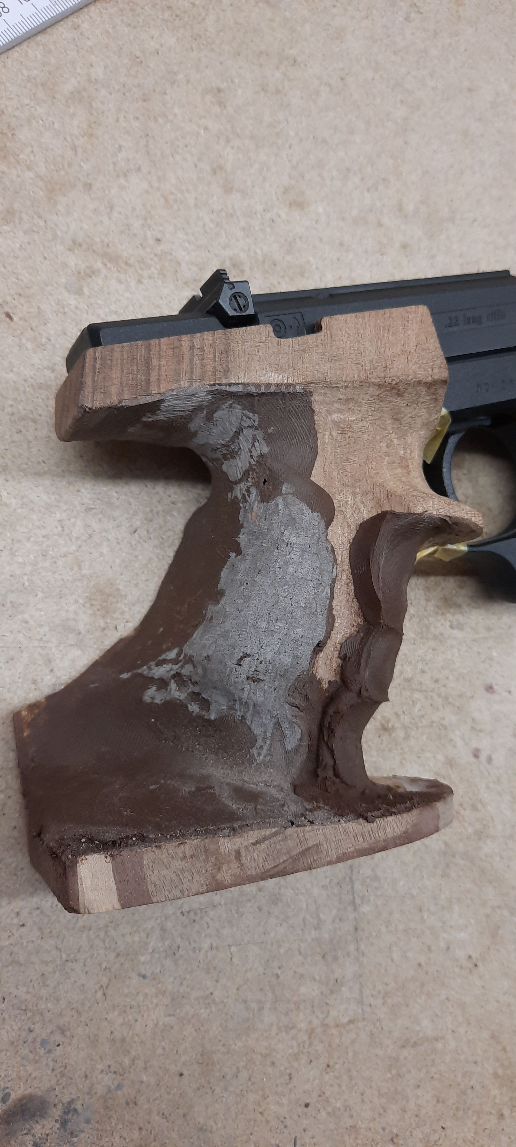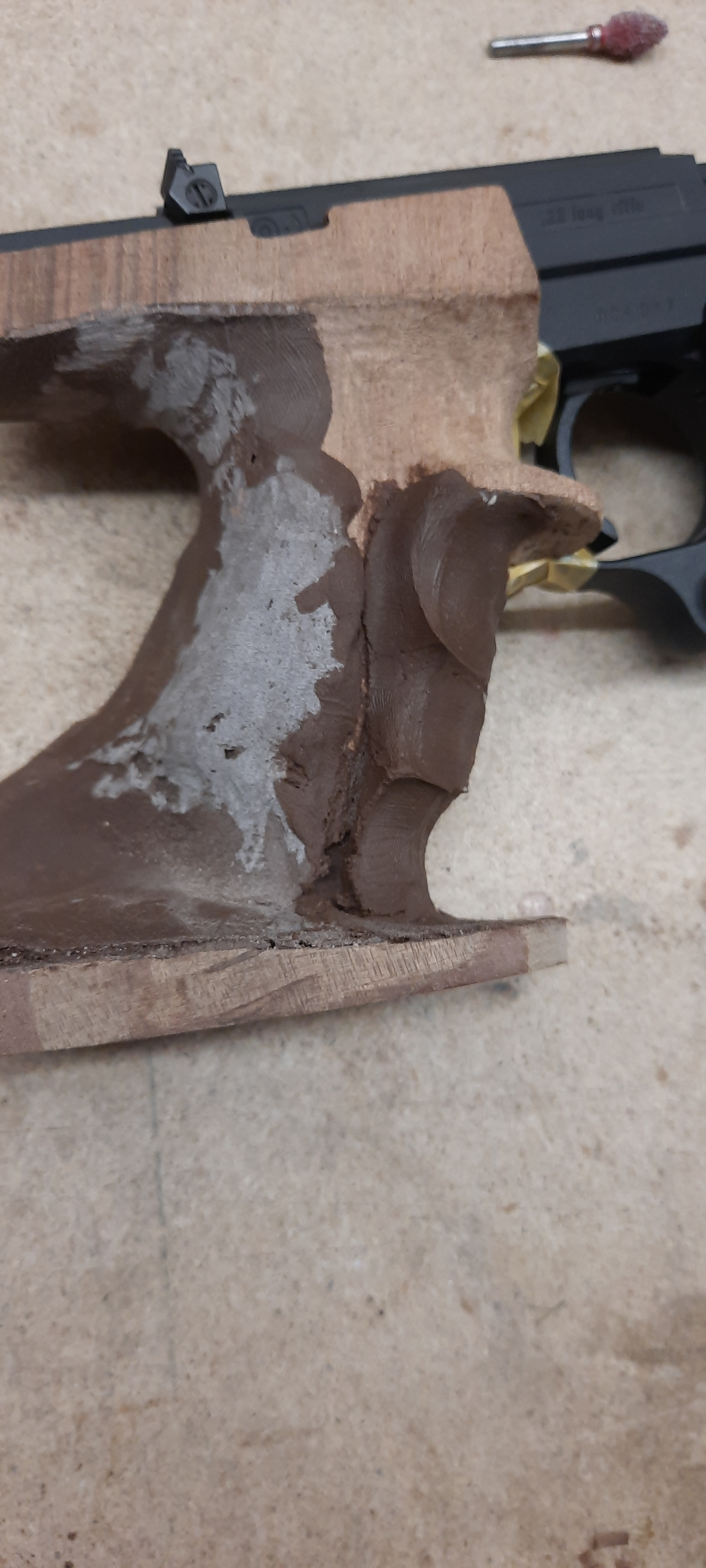 Und den Dremel hab ich noch angesetzt, um dem Daumen Platz zu schaffen und soviel Volumen wegzunehmen, dass die Finger vorne gut rumkommen...