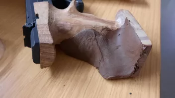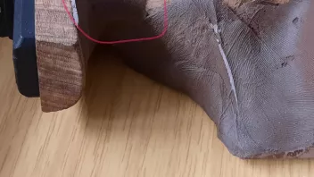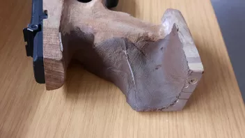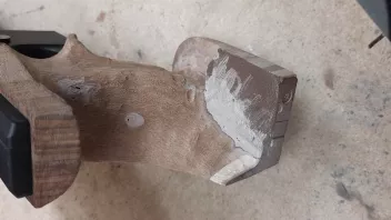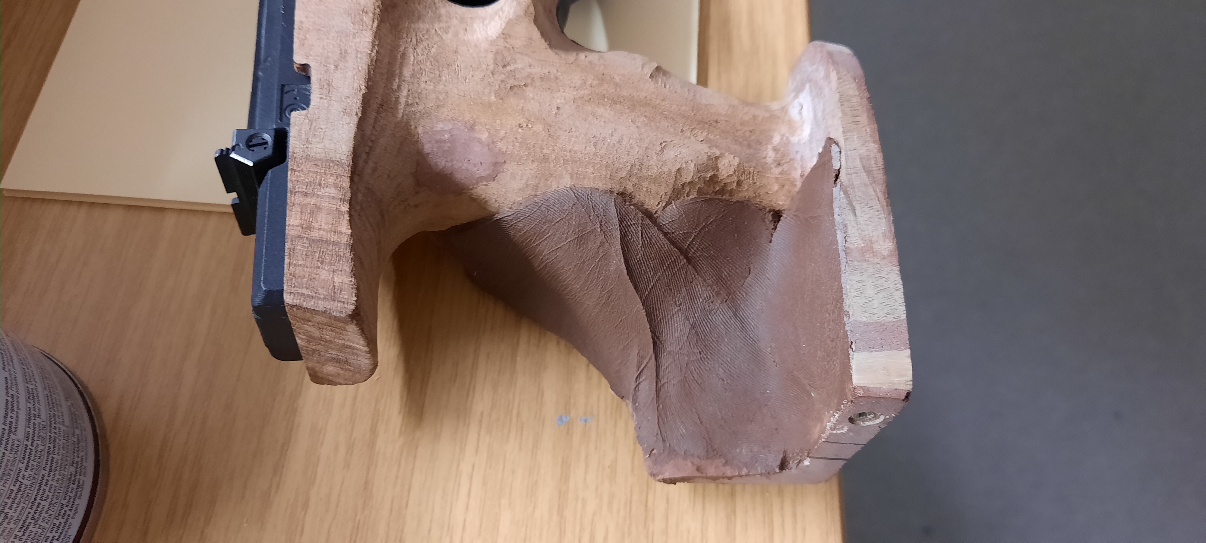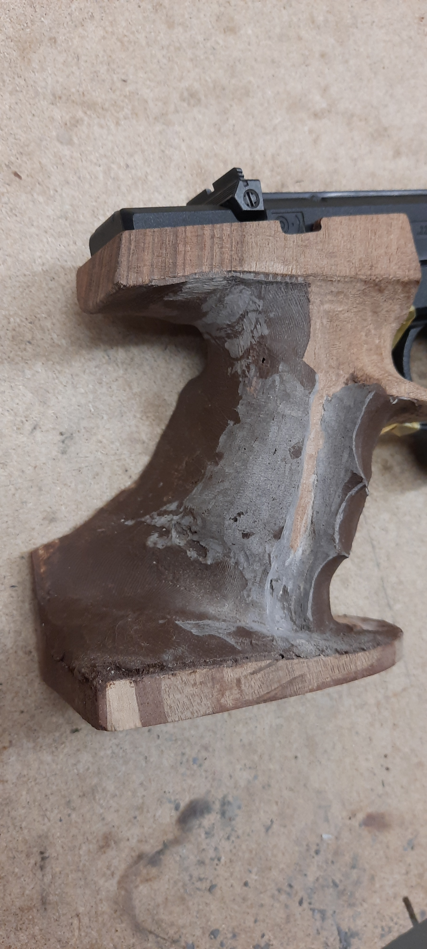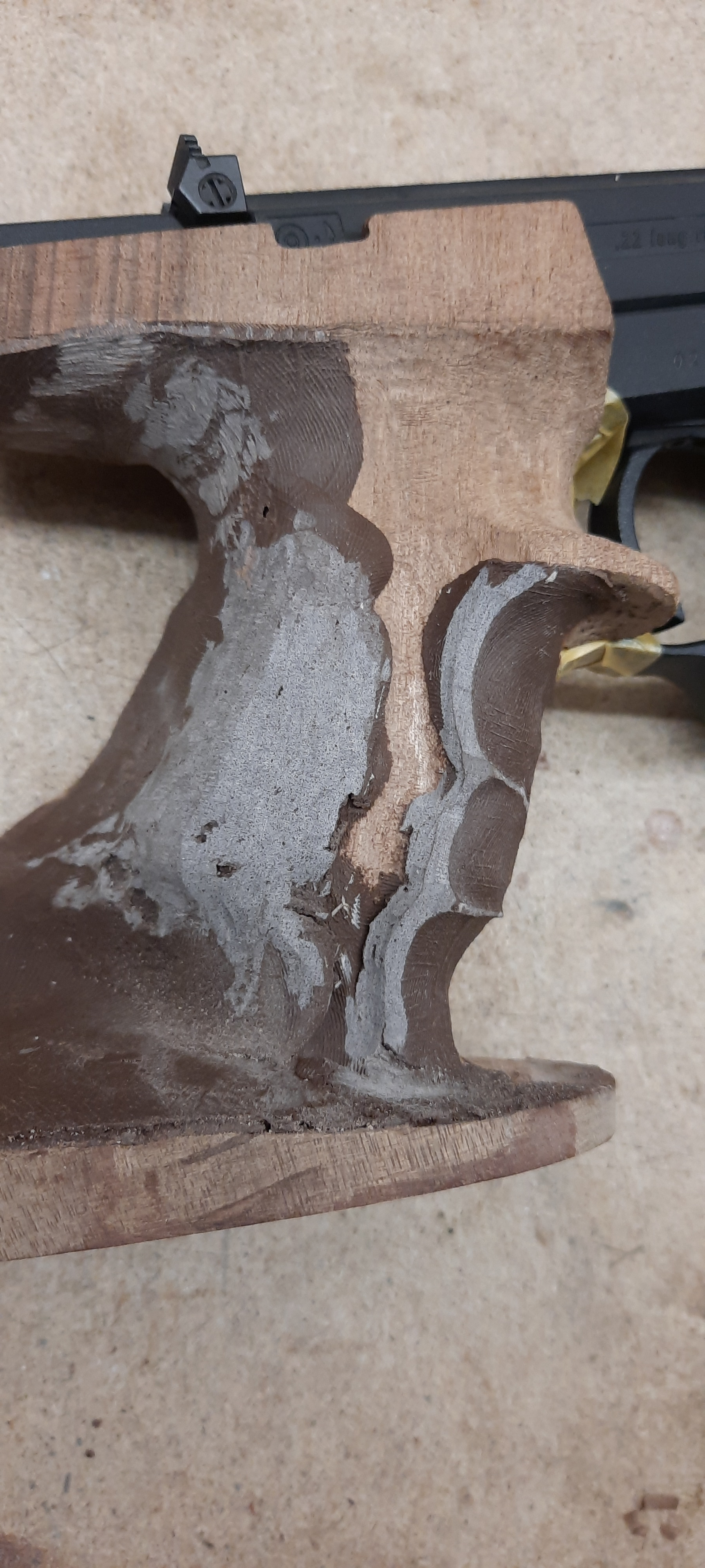 Und den Dremel hab ich noch angesetzt, um dem Daumen Platz zu schaffen und soviel Volumen wegzunehmen, dass die Finger vorne gut rumkommen...