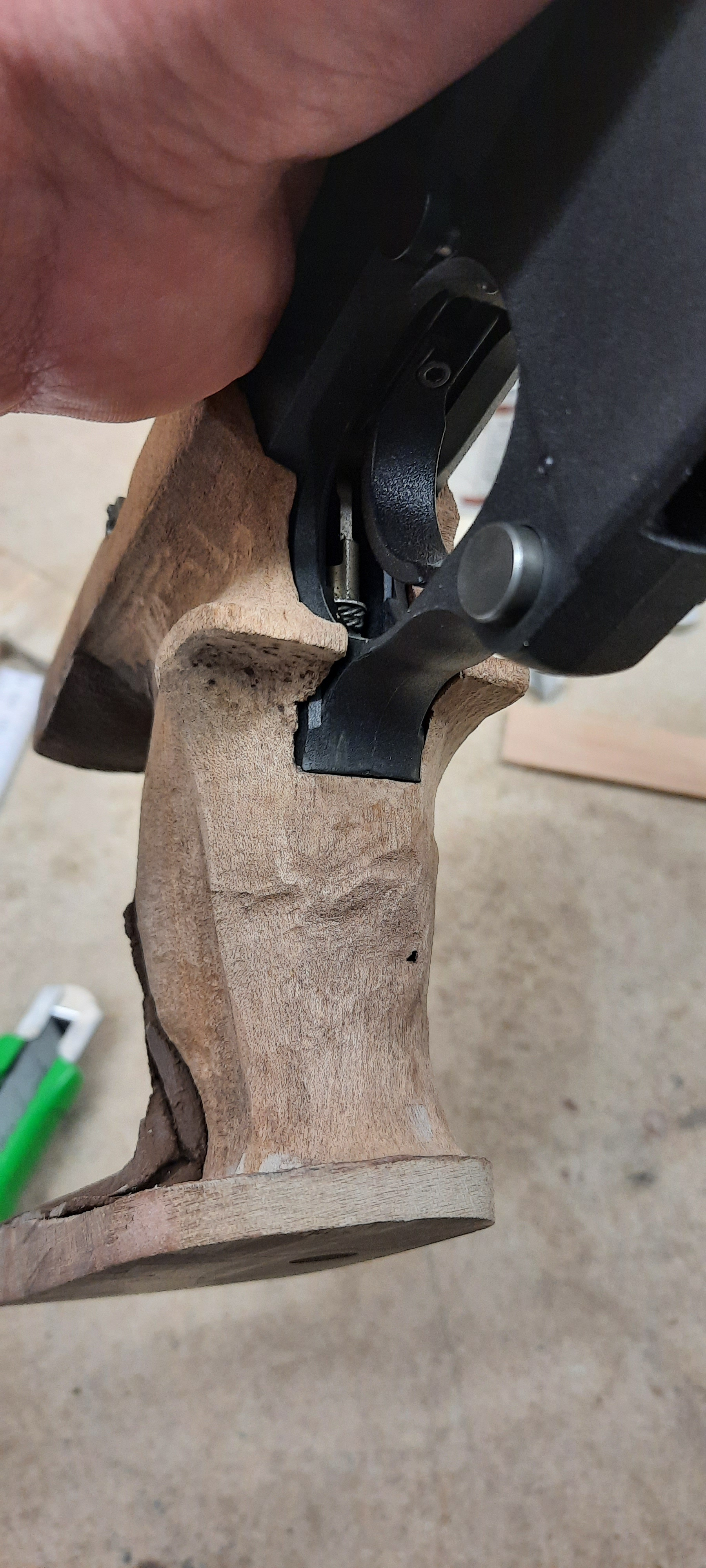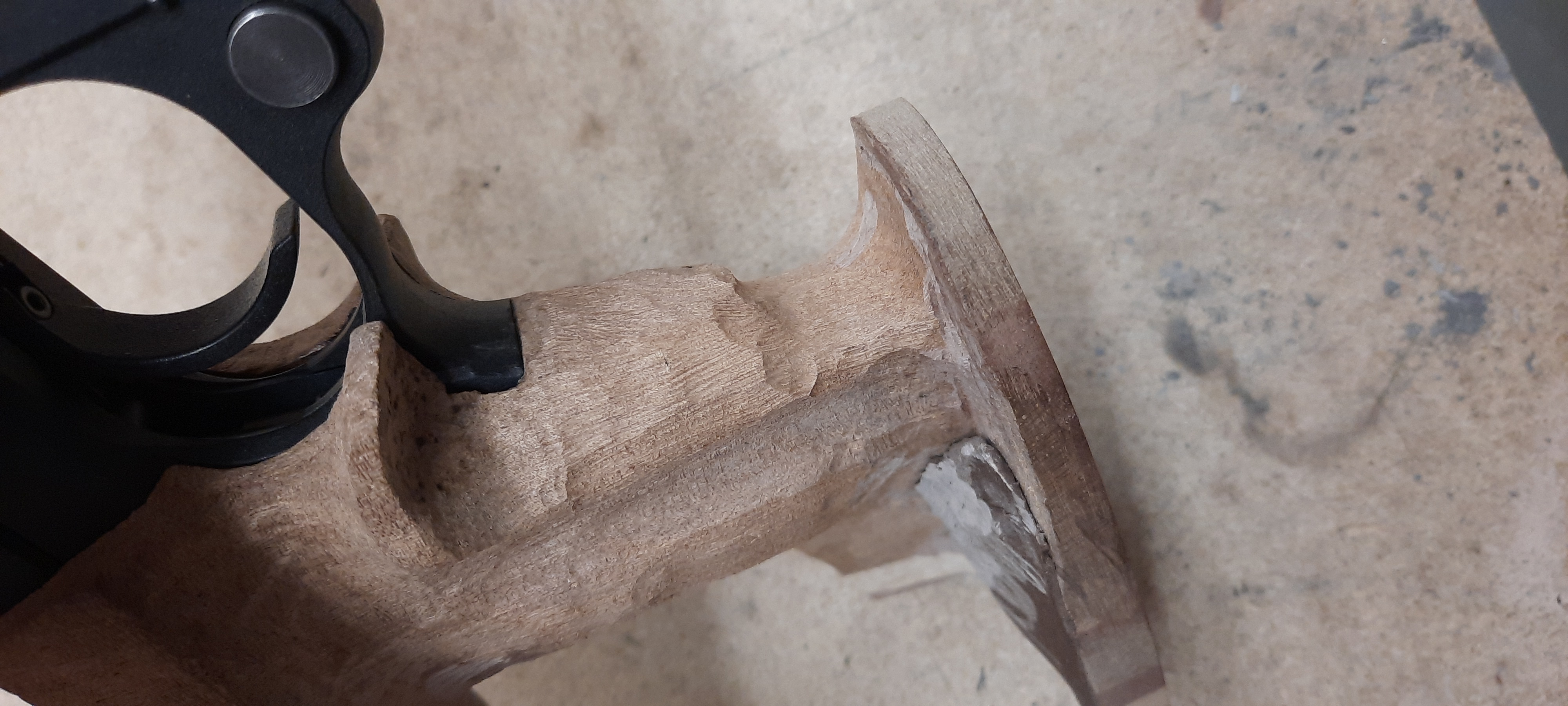 so, heute bloß etwas weiter vorbereitet, hinten habe ich den Griff jetzt soweit abgeschliffen, dass er genau in meinen Kasten passt.