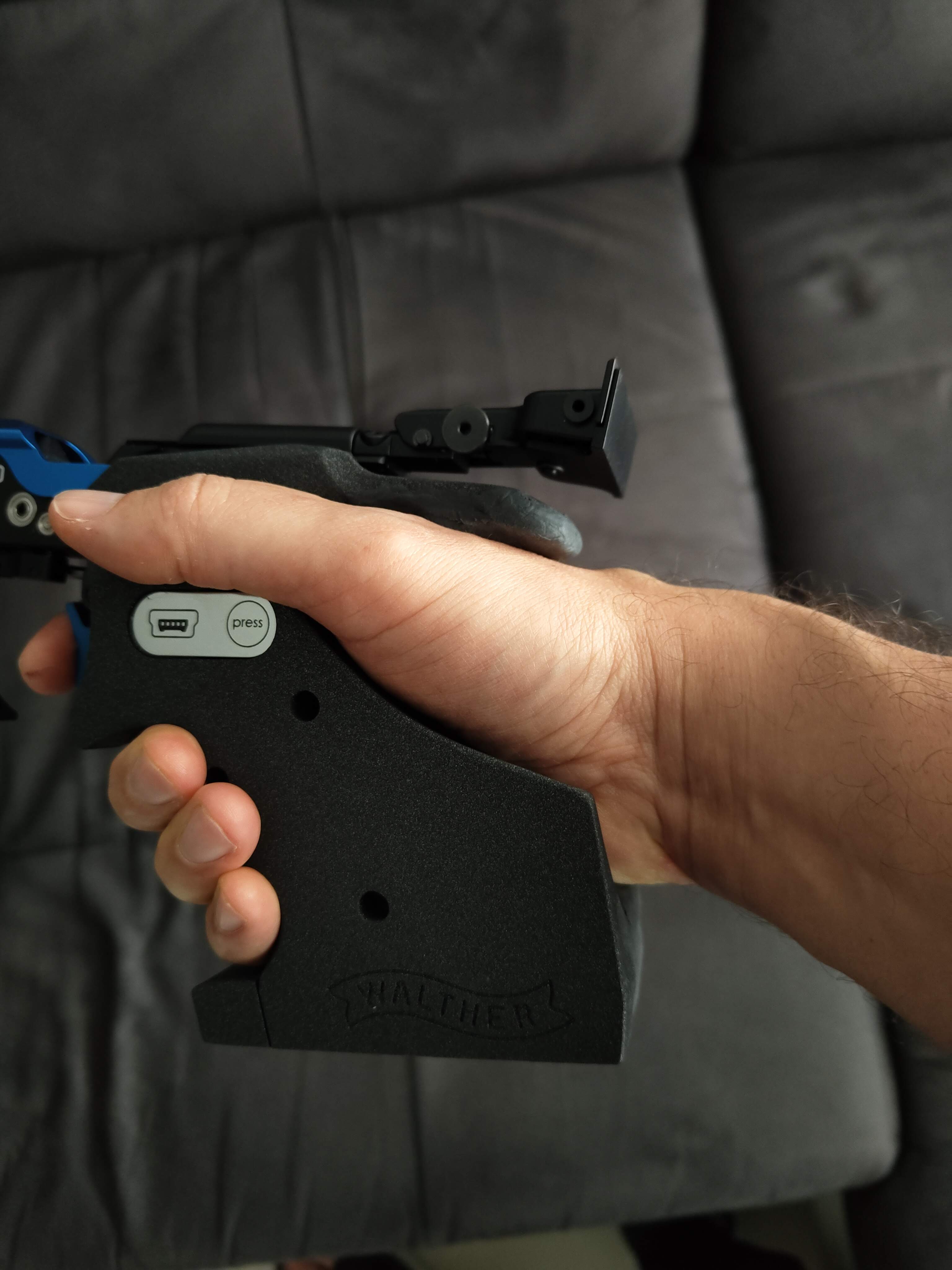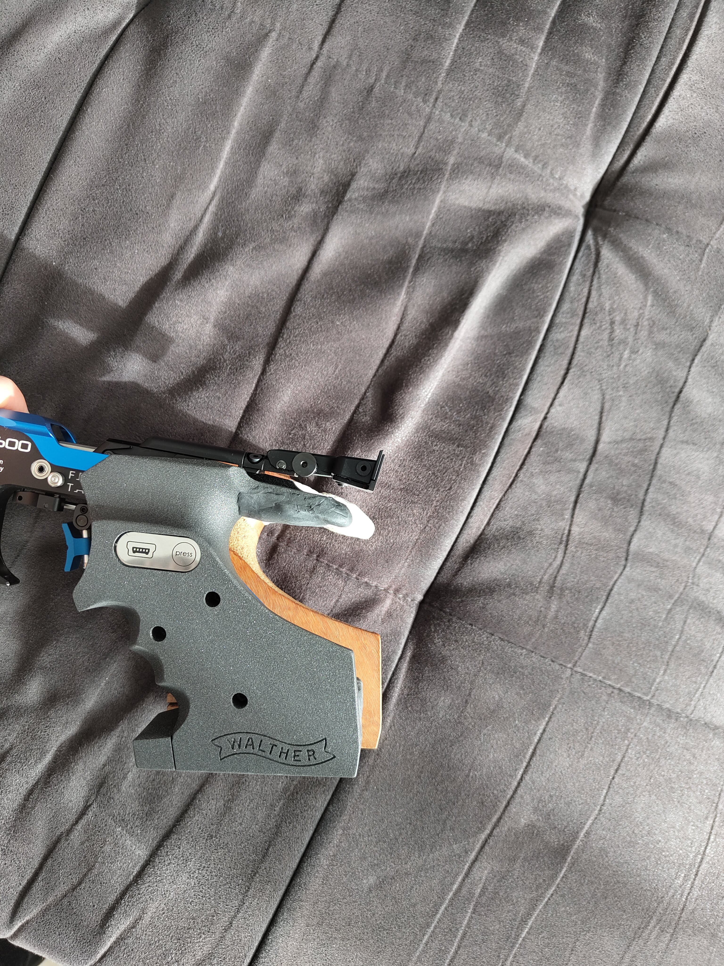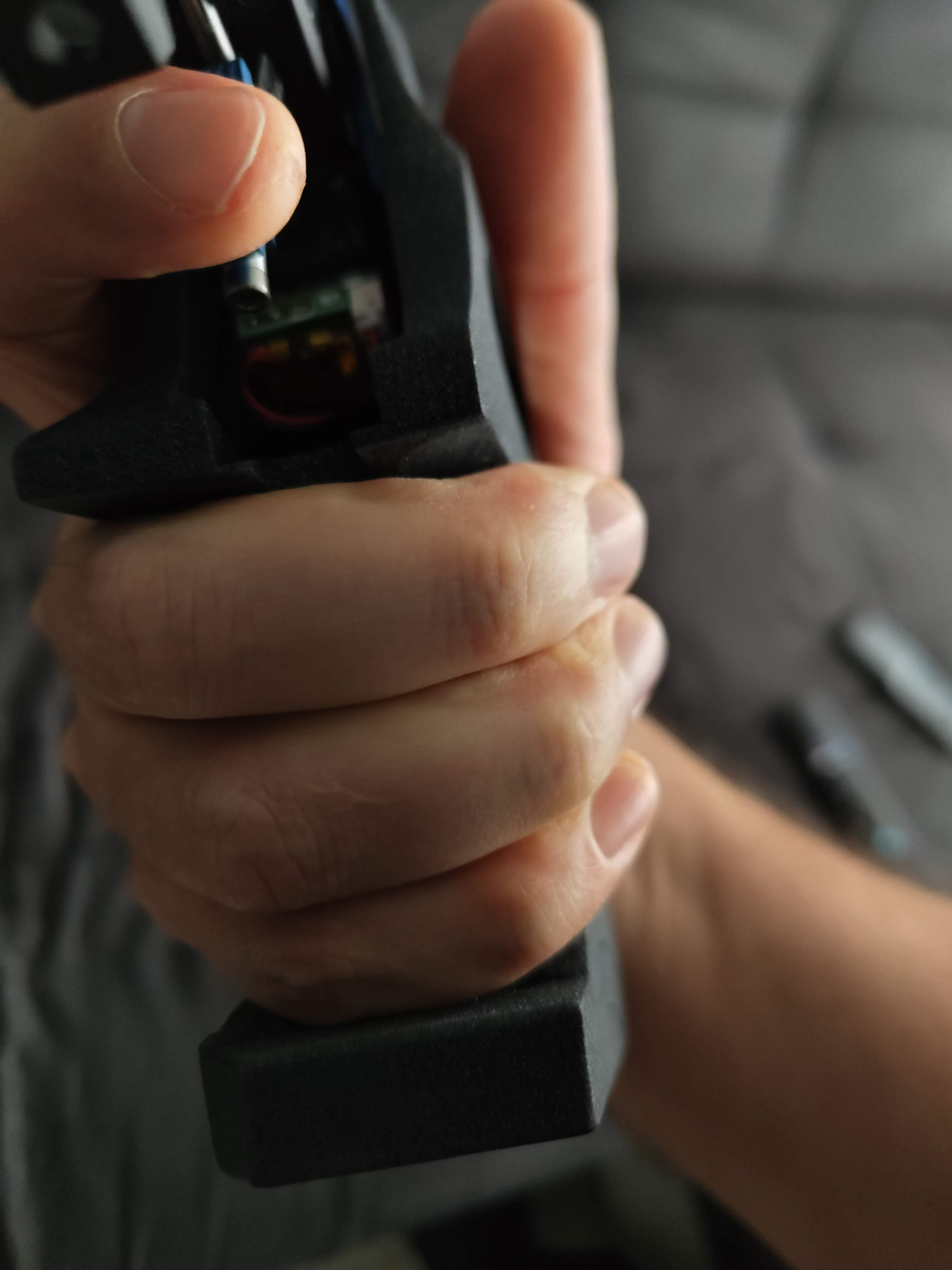 Bei der LP400Carbon war es nicht der Fall.Da die Pistole neu ist (und es auch keine Griff-Alternativen gibt wegen dem E-Anschluss) habe ich vorsichtig angefangen mit Knete den 5D Griff zu modellieren. Es wurde besser, aber weiterhin nicht gut.