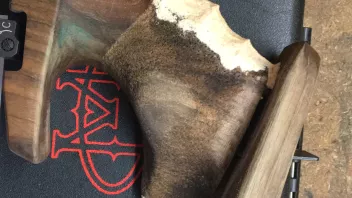 Handballenauflage ist das Teil das nach oben und unten gestellt werden kann. Dem darf man eine gewisse Form verpassen wobei quer zum Lauf 90 Grad bleiben sollen.