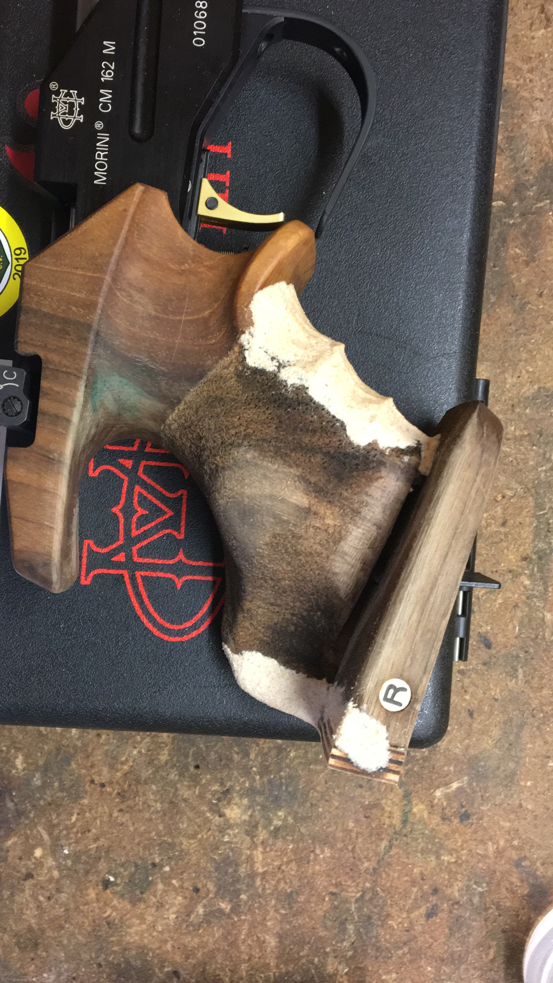 Wenn die Handballenauflage nicht verstellbar modelliert werden soll kann ich sie natürlich aus dem vollen spachteln und danach sportordnungskonform zurecht schleifen. Ich persönlich halte die Verstellbarkeit für wichtig.