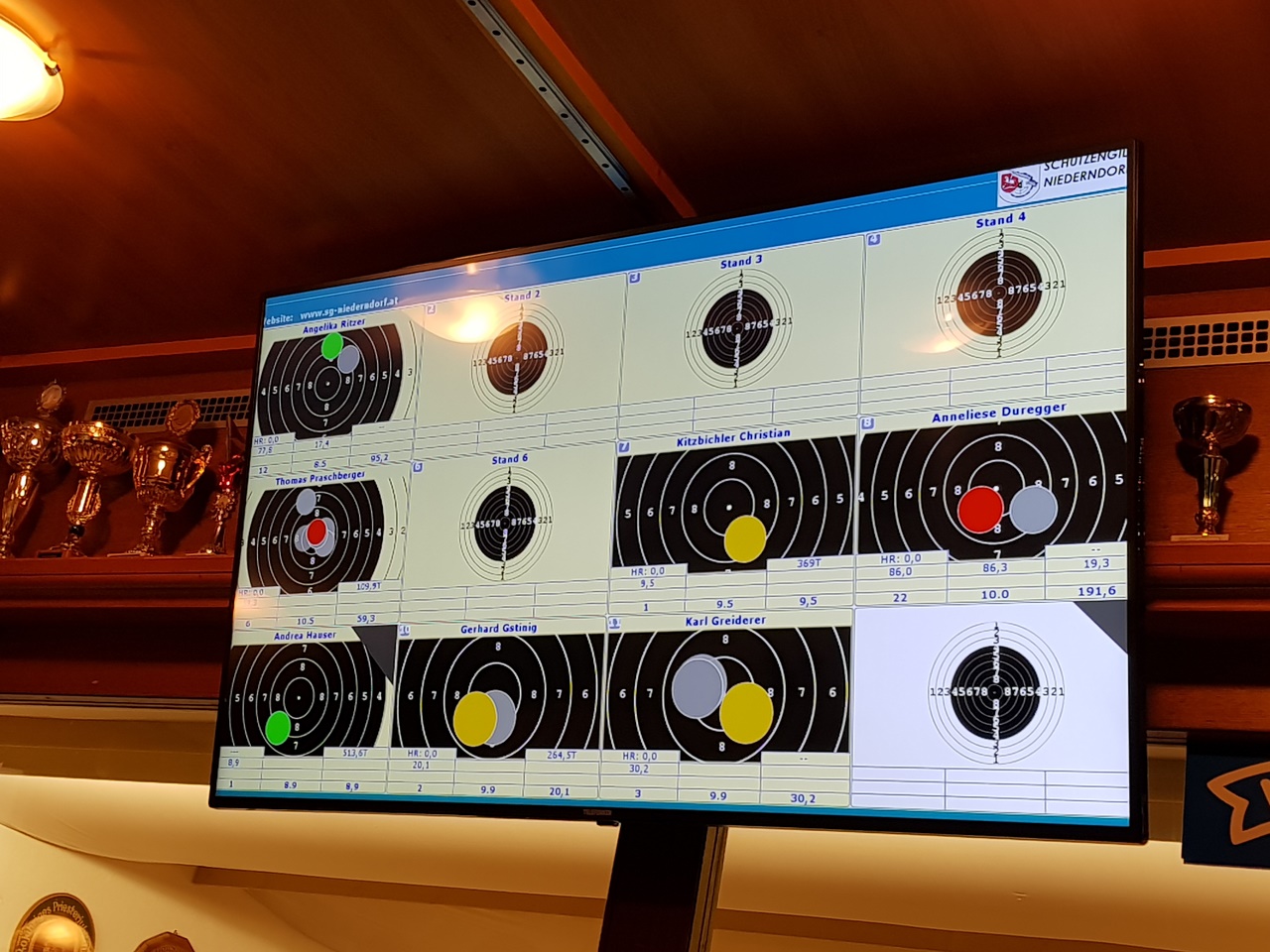 Bei Preisschießen mit der DISAG Anlage (GATE und Wlan Tablets) haben wir oft verschiedene Farben für verschiedene Disziplinen. So ist etwa der Blattlbewerb rot, die Ringbewerbe sind schwarz, und eine Geburtstagsscheibe ist blau eingefärbt.