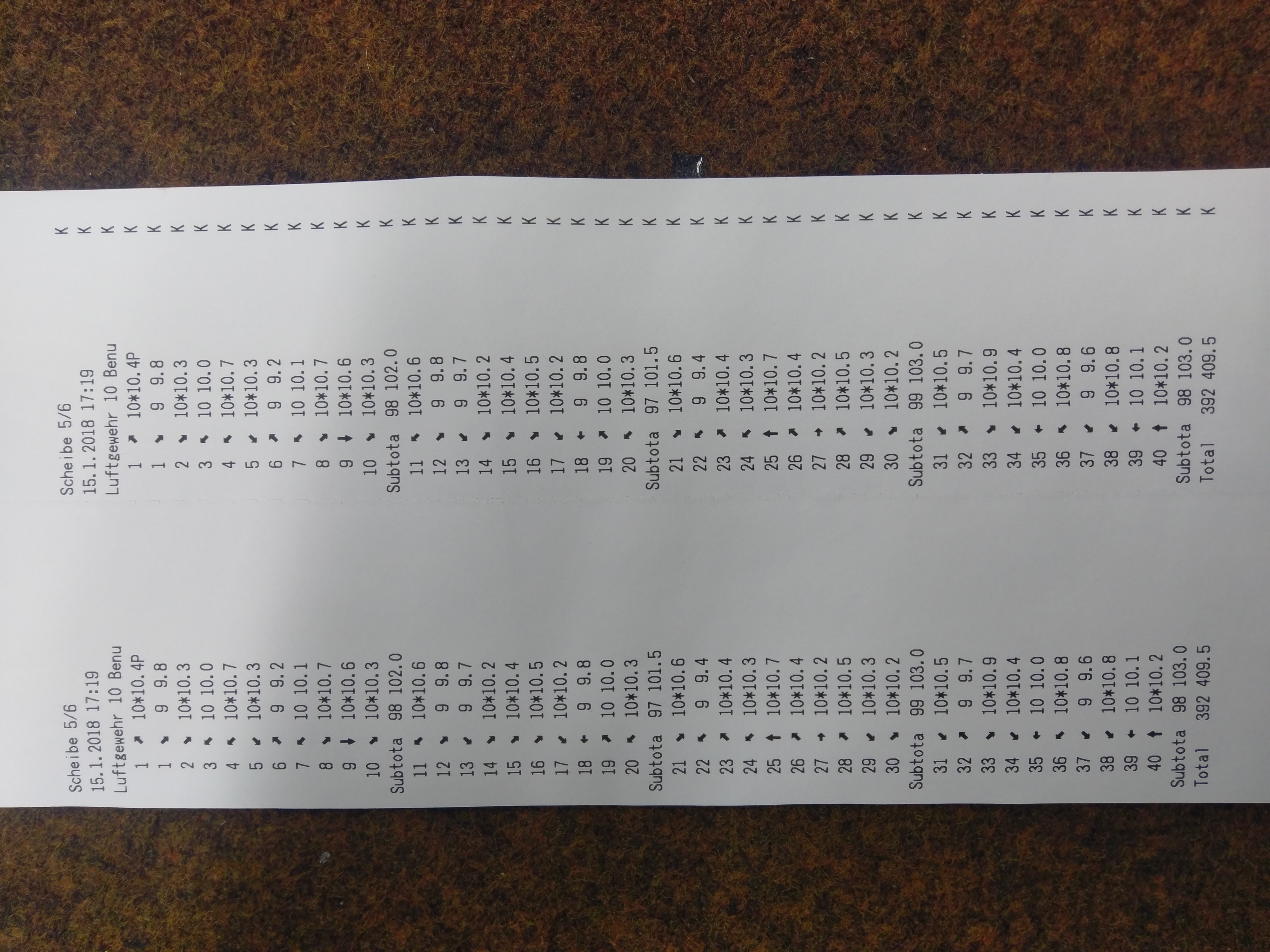 Ich schieße schon länger beim Stammschießen nicht mehr mit. Die Diskrepanz von "realen" Ergebnislisten zu "virtuellen" war mir dann doch zu groß.