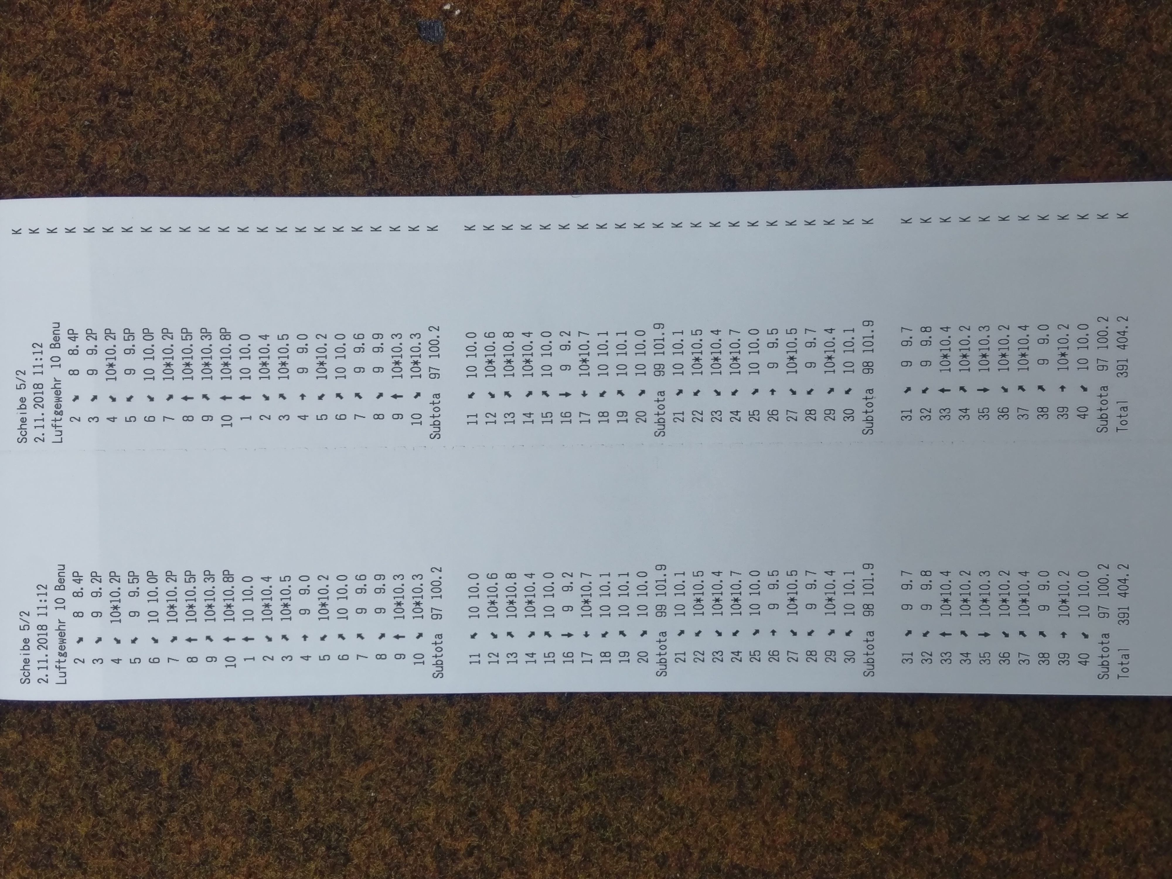 Hier mein Ergebnis für LG 40 aus meinem Ligakampf. Durfte anschließend 4 mal ins Stechen und hab verloren :), war aber ein toller Wettkampf für mich.