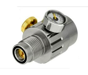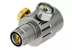 Der Druckminderer hat auf der Ausgangsseite ein langes 300 bar Gewinde, weshalb man den Adapter benötigt. Der ist aus meiner Sicht gefährlich, denn man könnte 200 bar Kartuschen zum Platzen bringen. Ich habe ihn deshalb mit Schraubensicherung mit dem Druckminderer verklebt. Der Druckminderer wird voreingestellt auf 200 bar geliefert; man kann ihn intern nachjustieren.