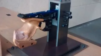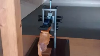 ...Hier zunächst mal zwei Bilder von meiner Spannvorrichtung. Die MG2 bietet sich mit ihrem massiven Stahlblock vorne förmlich dazu an fest am Lauf gespannt zu werden.