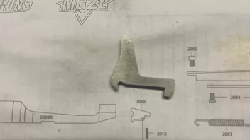 Ich muss zu meiner Schande gestehen, das ich keine Ahnung habe was da alles fehlt. Ich weiß nicht, wie das Teil aussieht, habe es nie ausgebaut. Ich sehe aber keine Bruchkante und würde daher sagen, dass es komplett fehlt, da ich außer der Feder nichts sehe.