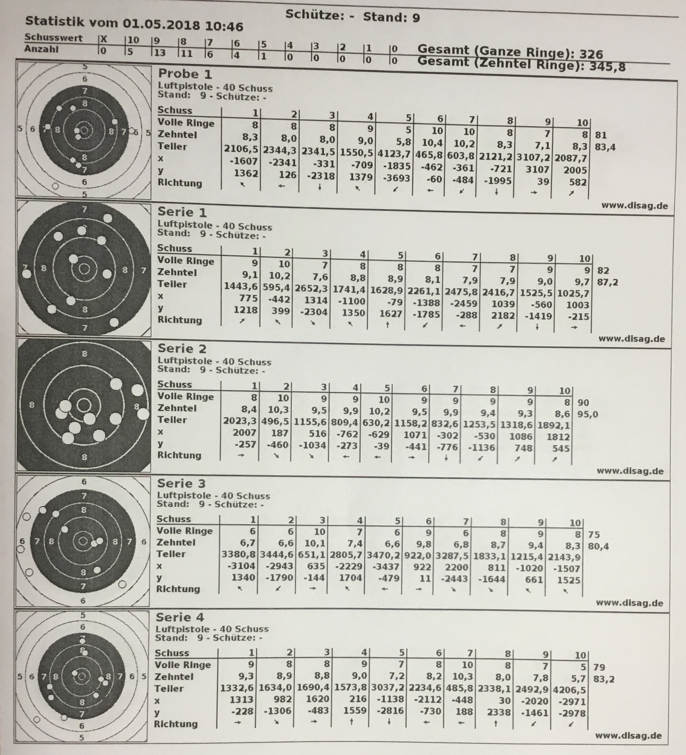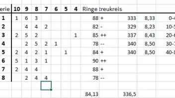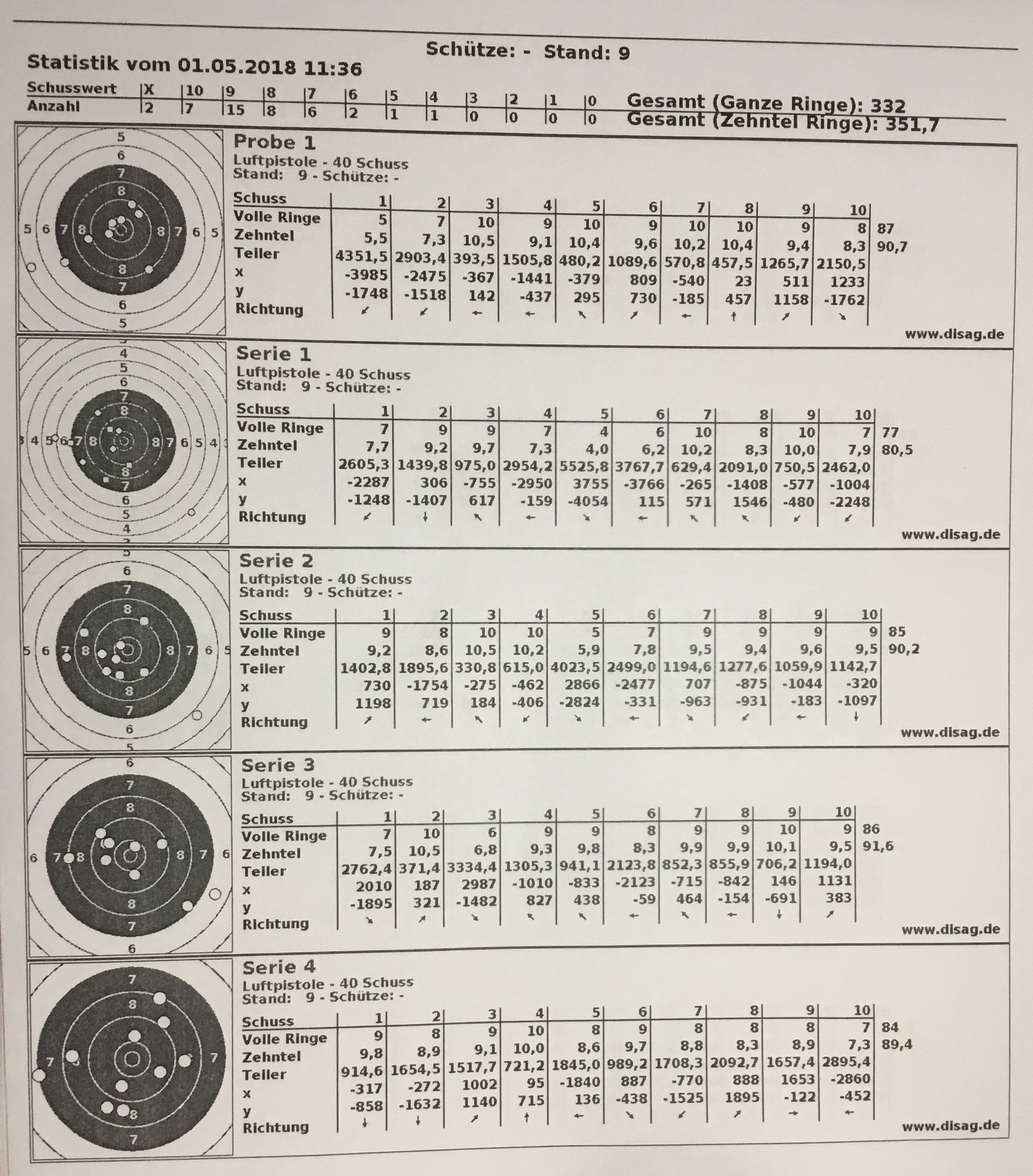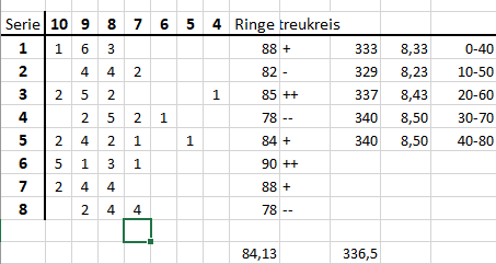 2. In Kombination mit 1. das Aufbauen der Kondition. Heißt also 15 Minuten Probe, 50 Minuten (40 Schuss, 4er Serien), danach nochmal 40 Schuss (10er Serien).