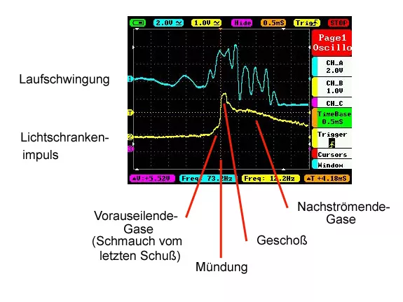 der Schwingung hat. Und genau in dieser Amplitudenumkehr sollte das Geschoß den Lauf verlassen.
