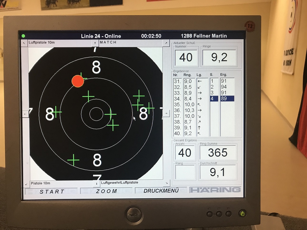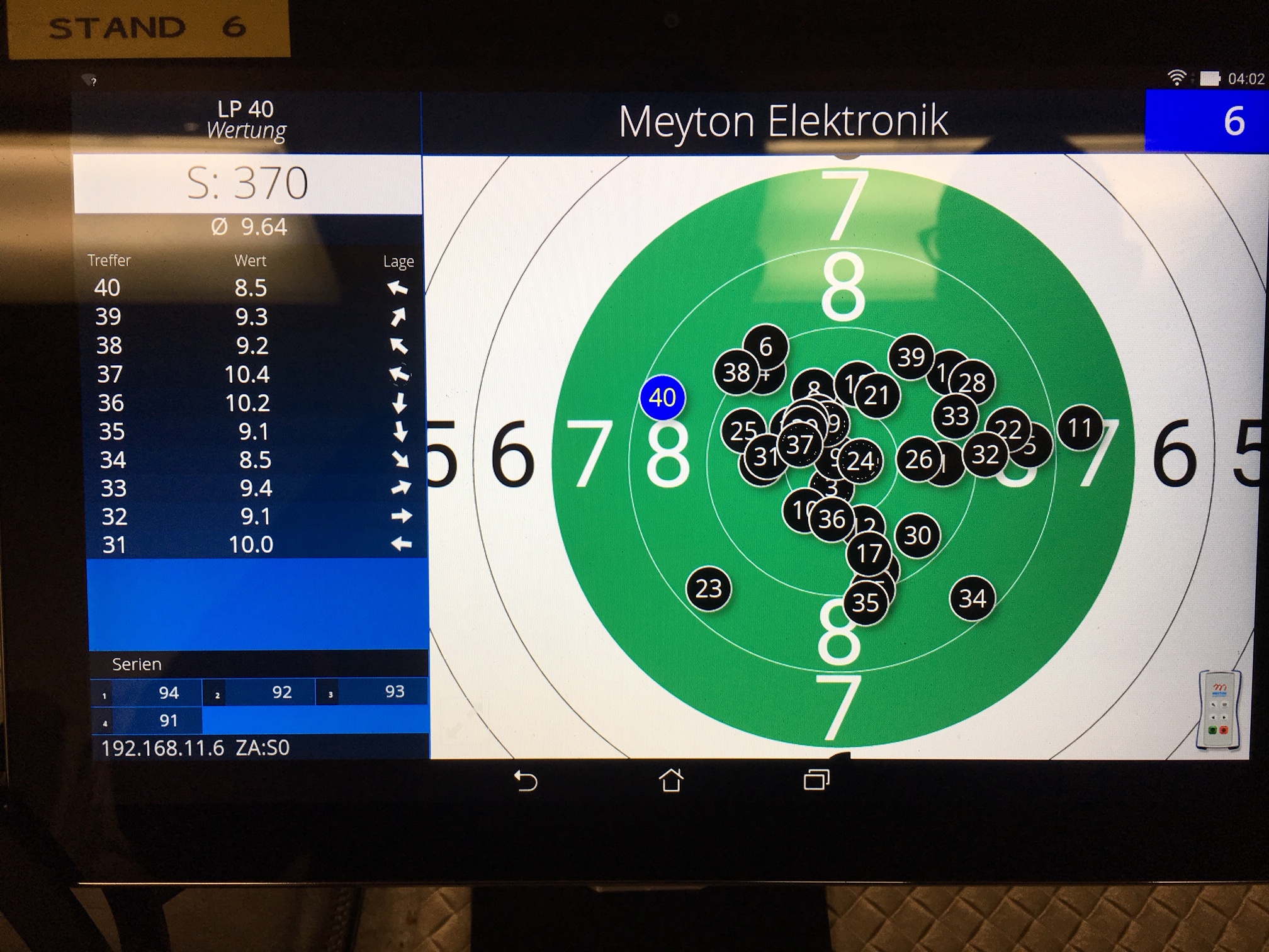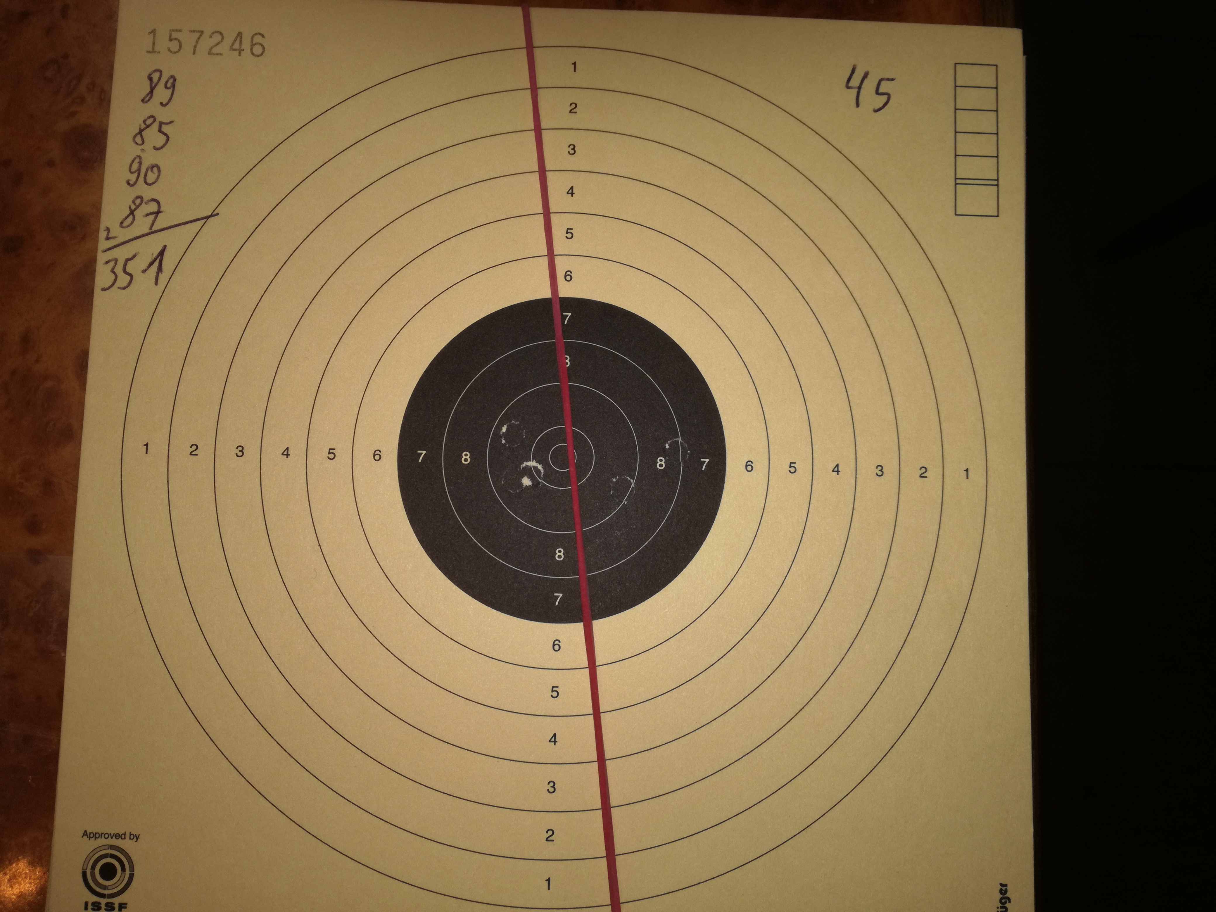 1/10tel Wertung: 106,3 / 107,0/ 105,5 = 318,8 Ringe