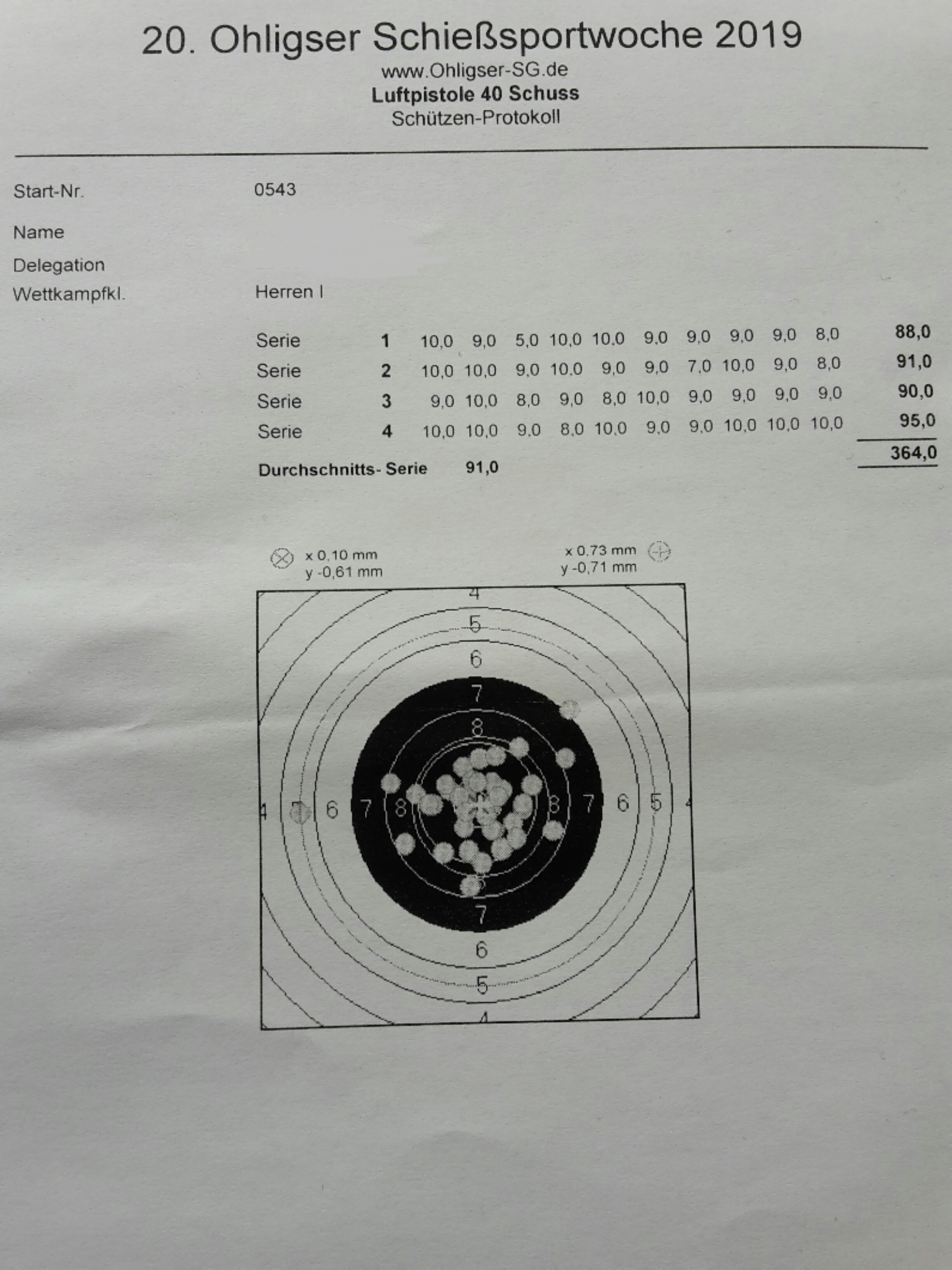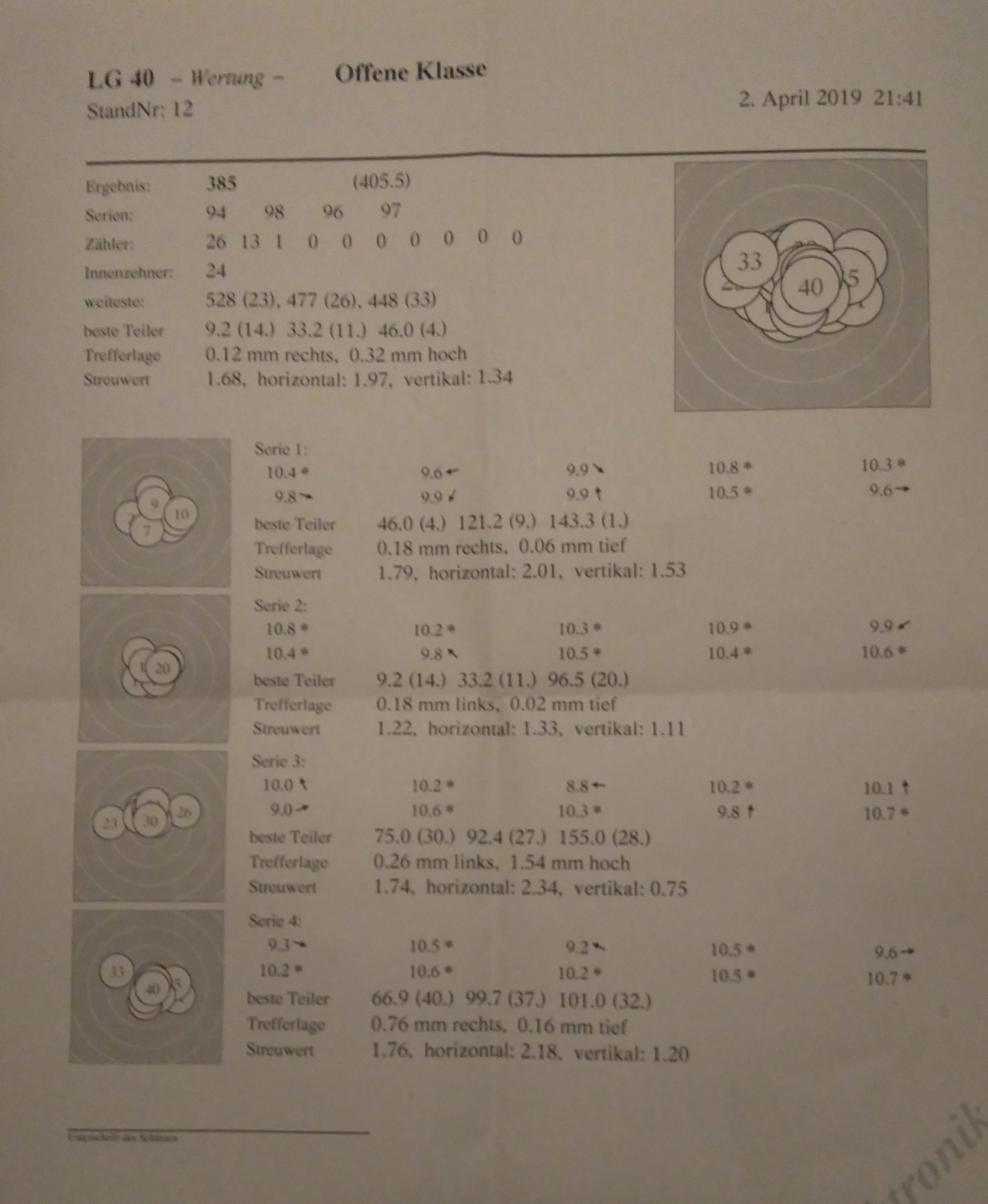mein Ergebnis LG- Auflage 30 Schuss für Mai 2019,