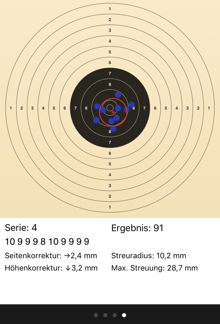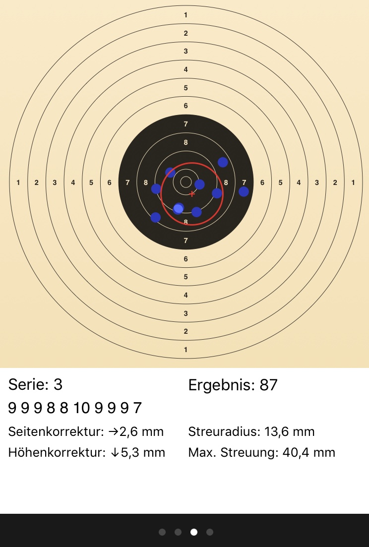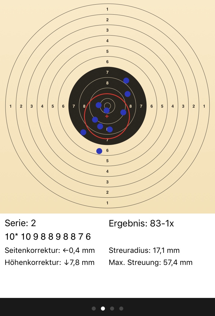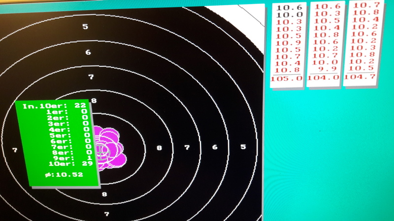 Nachdem ich zur Beruhigung meinen Stand gelöst, die hektischen Gedanken vertrieben und meinen Stand neu aufgebaut hatte, wurde es gefühlt wieder besser. Ich bin aber immer mal wieder mit dem Fokus von der Visierung auf die Scheibe gesprungen und das war nicht so gut...