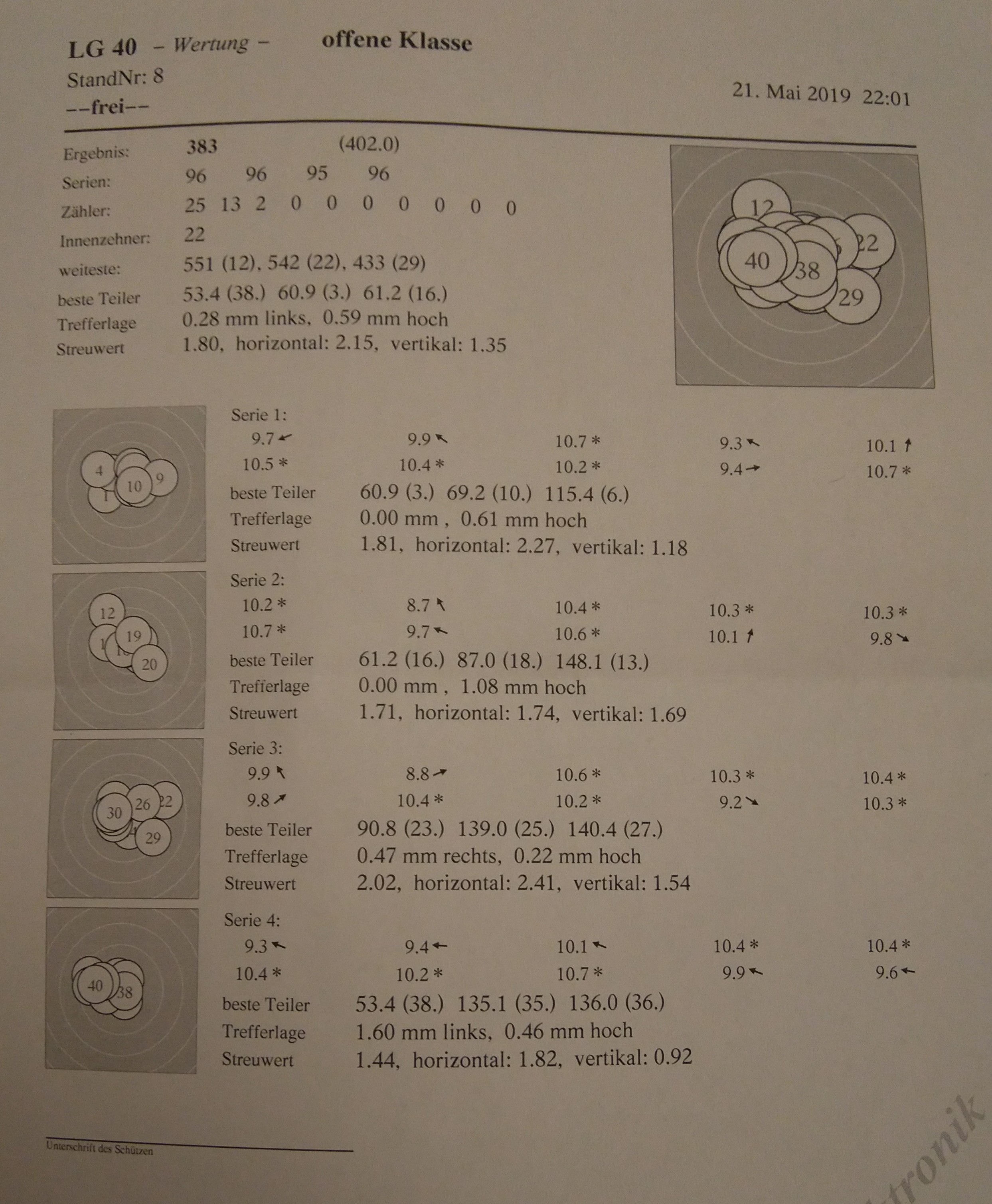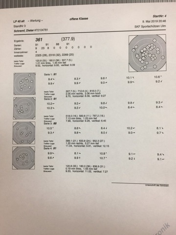 anbei mein Ergebnis für LP 40 Schuss für den Mai: