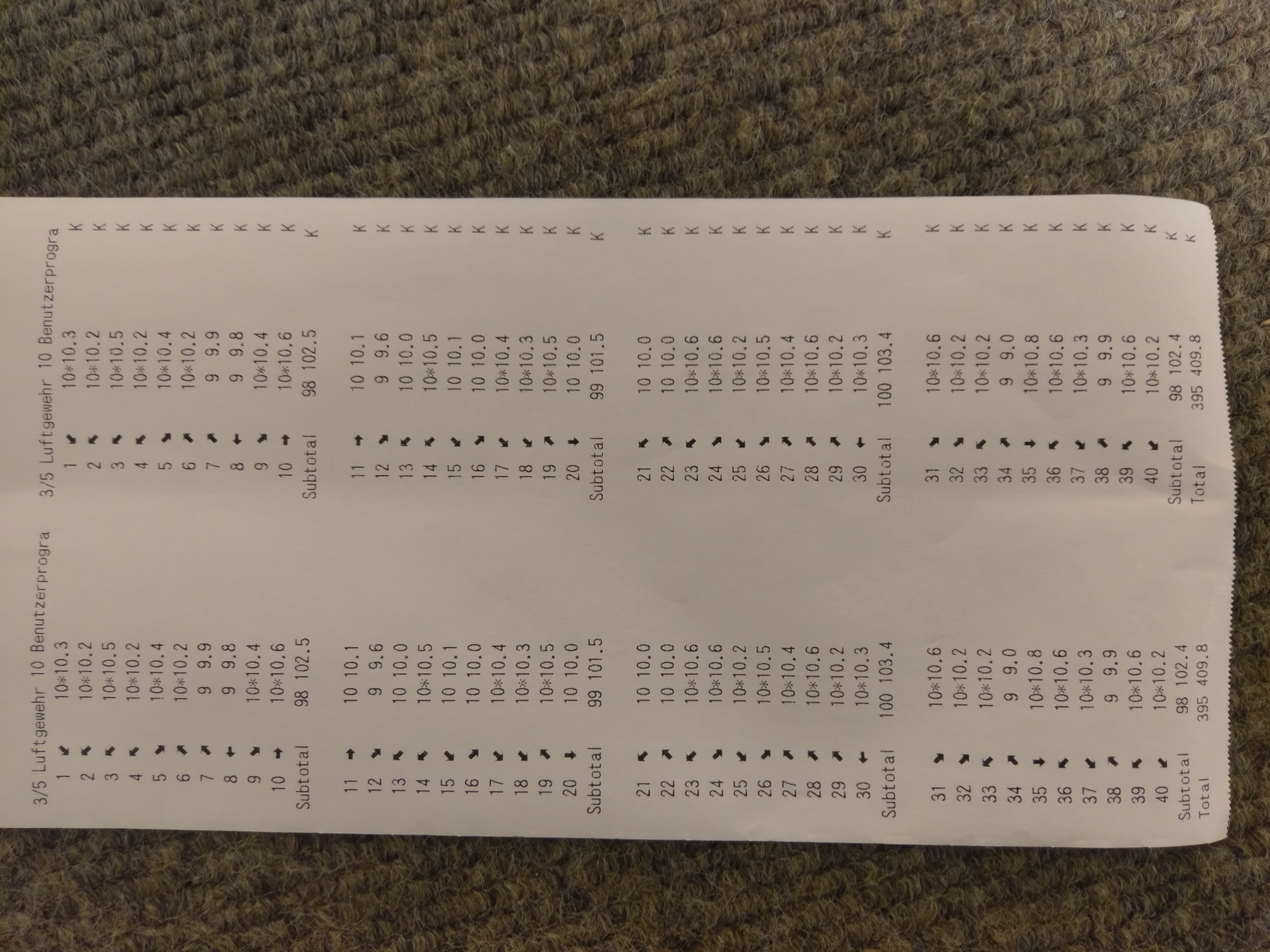 Ergebnis LG40 für Mai: 98 + 96 + 96 + 95 = 385